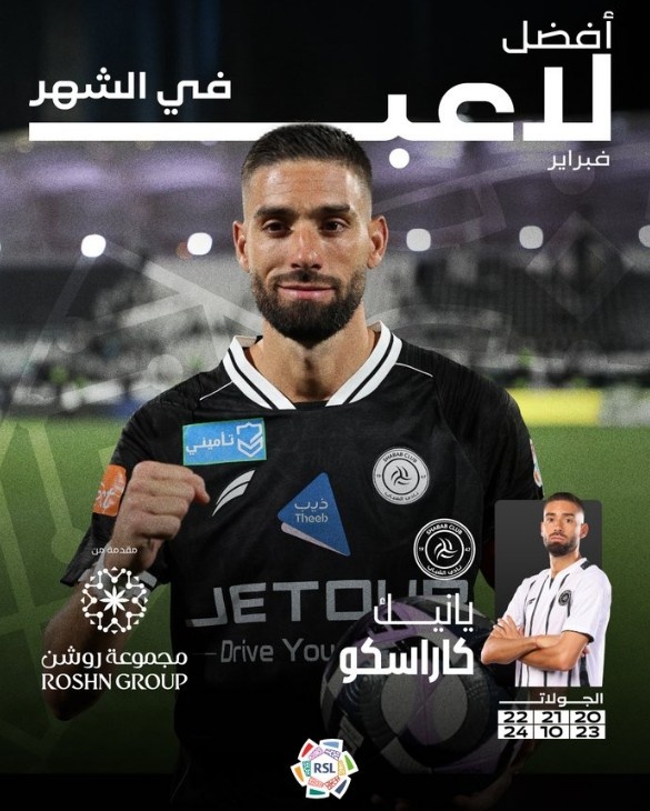 6场6球3助!沙特联官方:卡拉斯科当选2月份联赛最佳球员