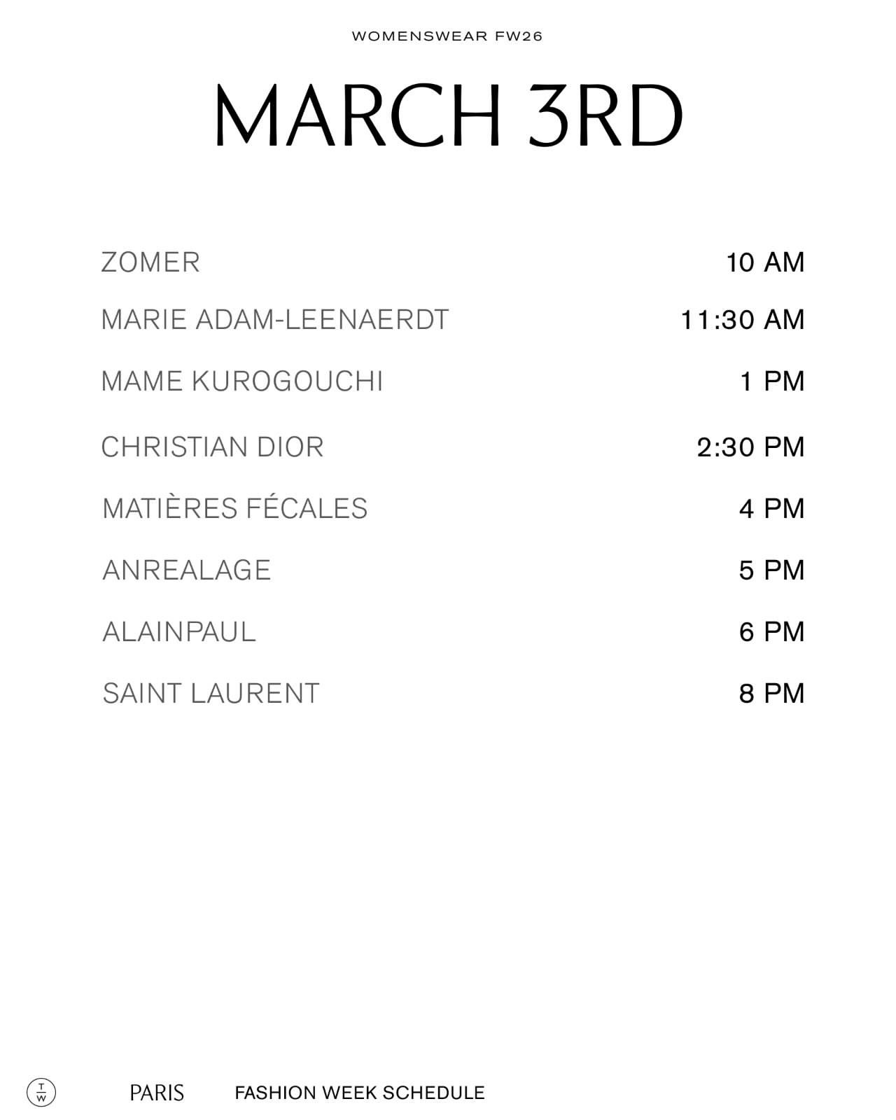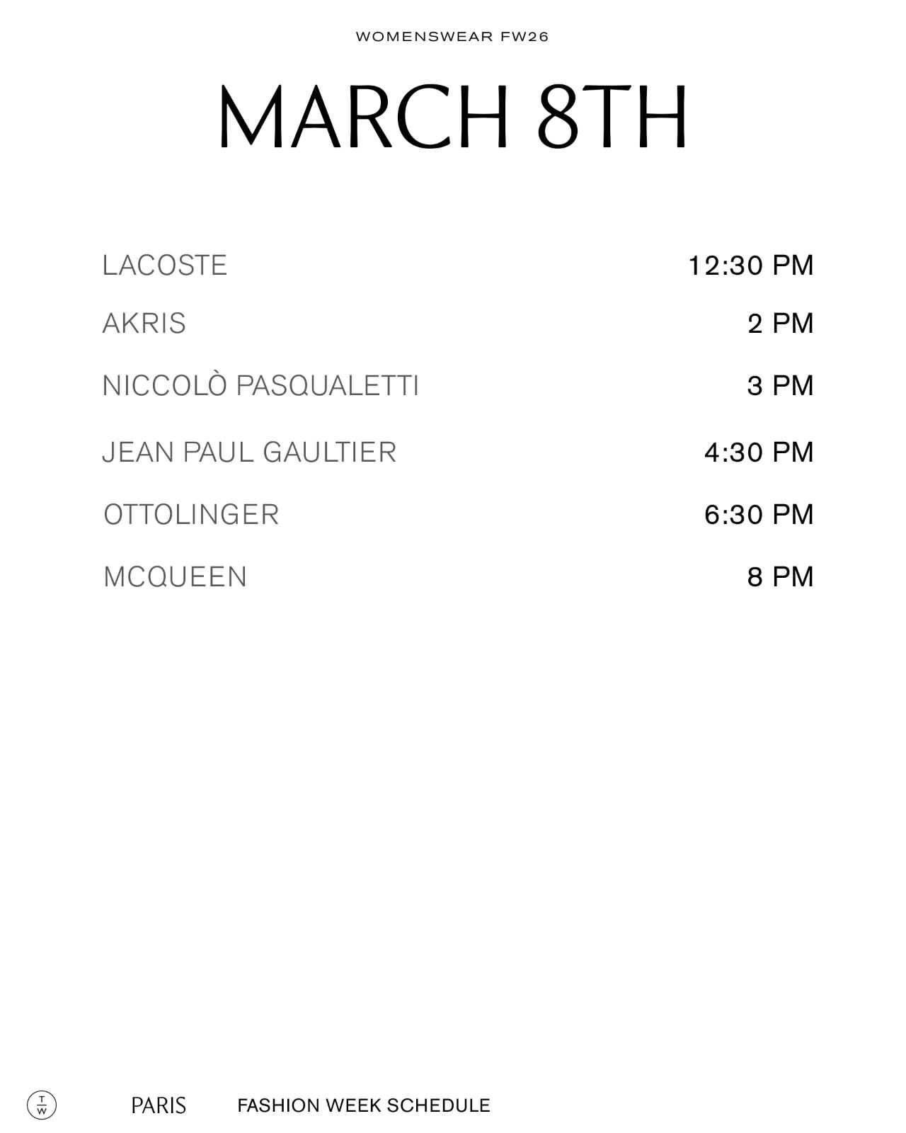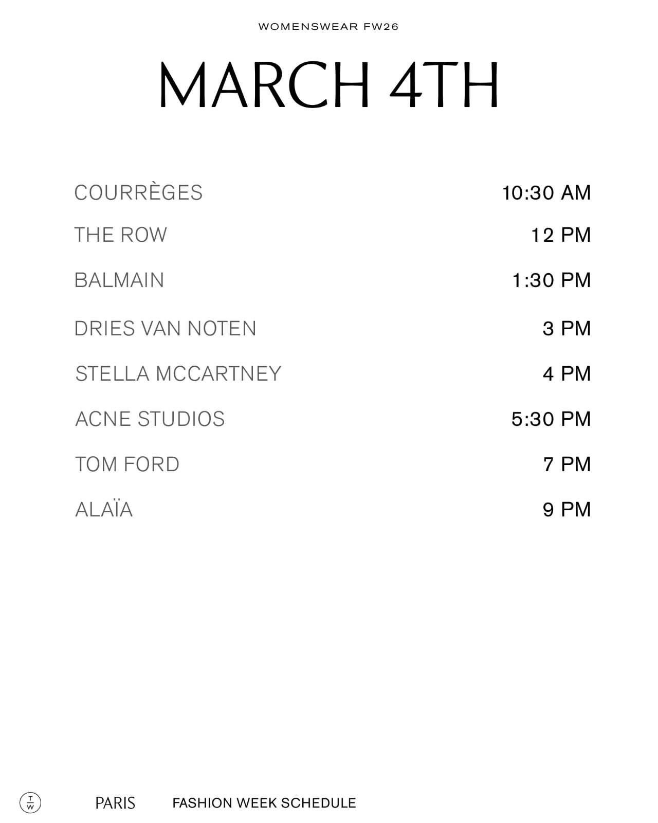 2026秋冬巴黎时装周时刻表时装周巴黎时装周