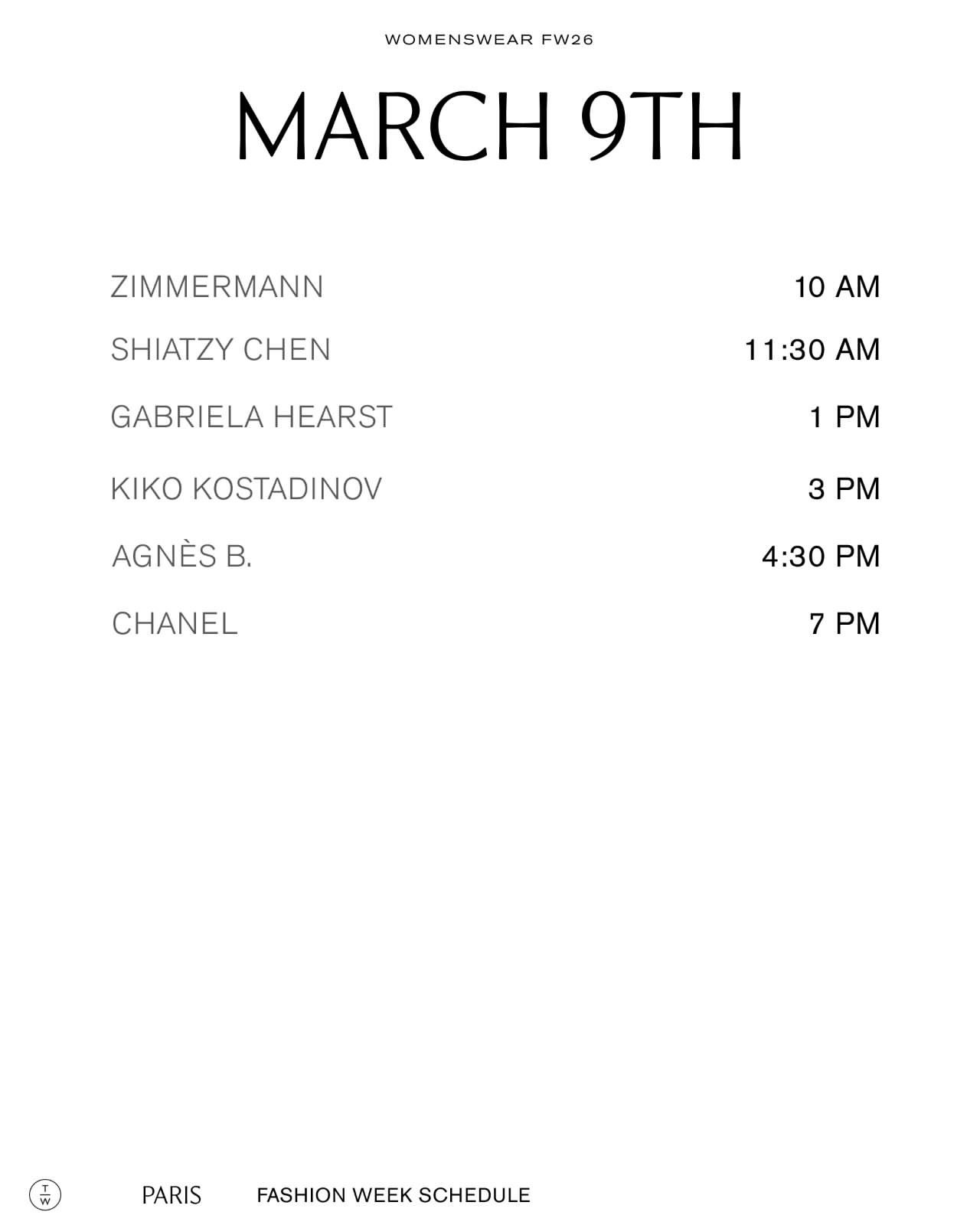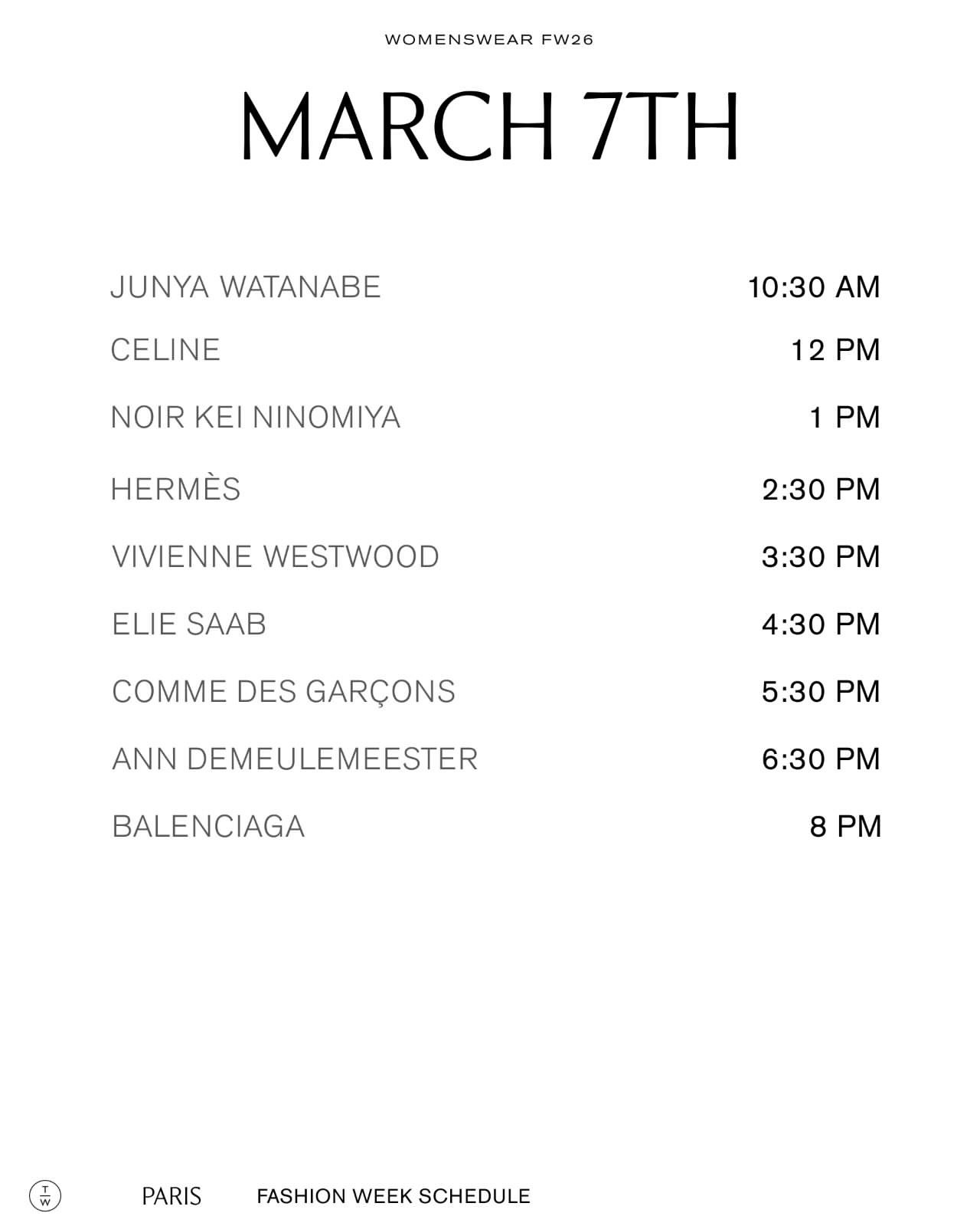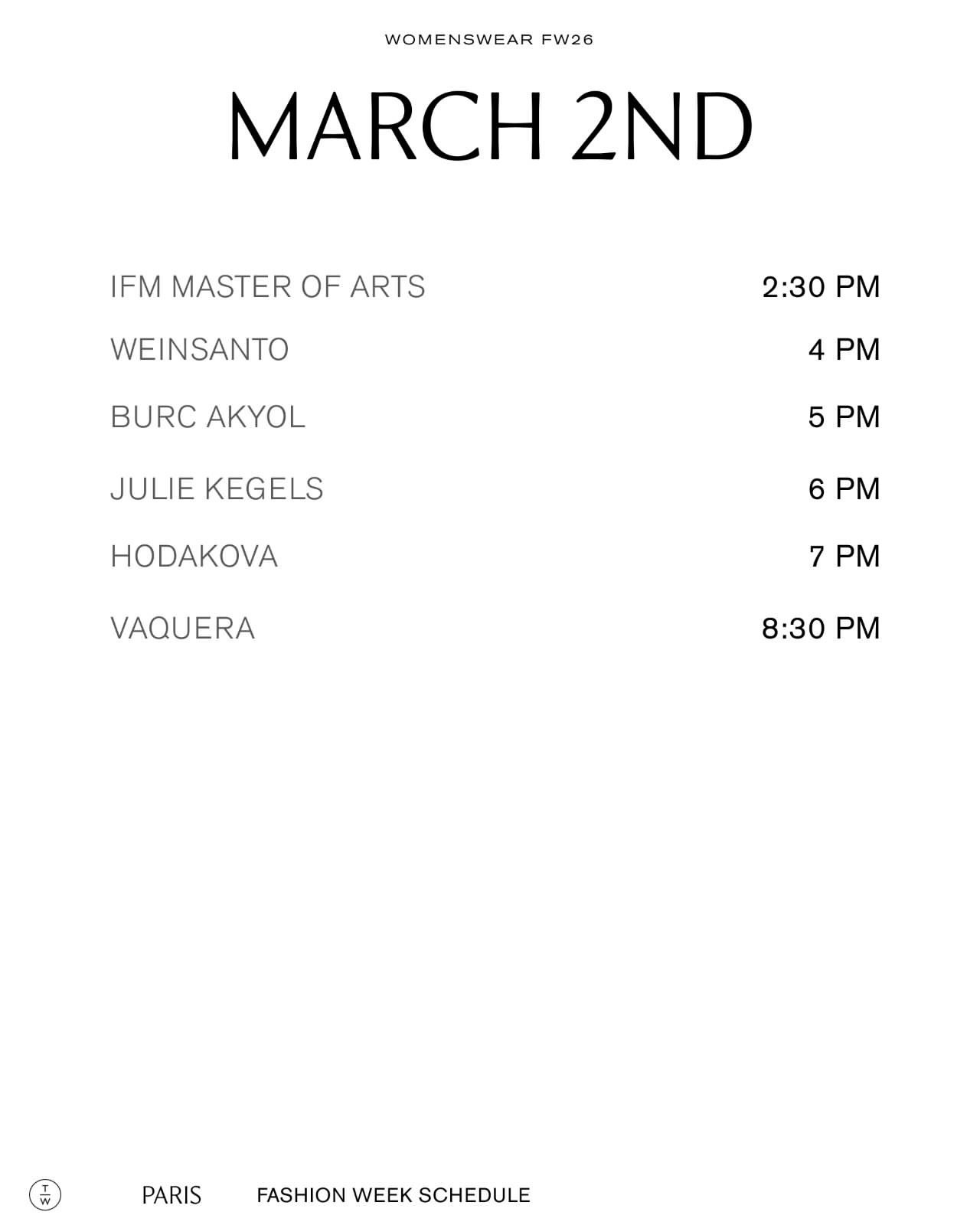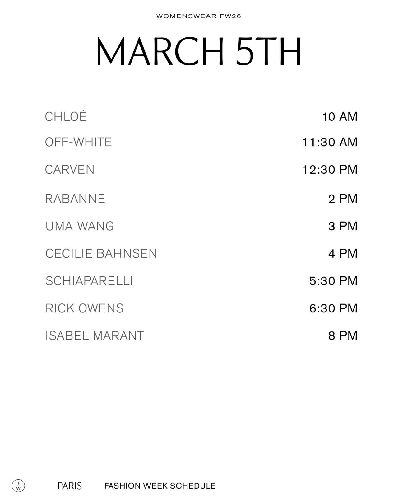 2026秋冬巴黎时装周时刻表时装周巴黎时装周