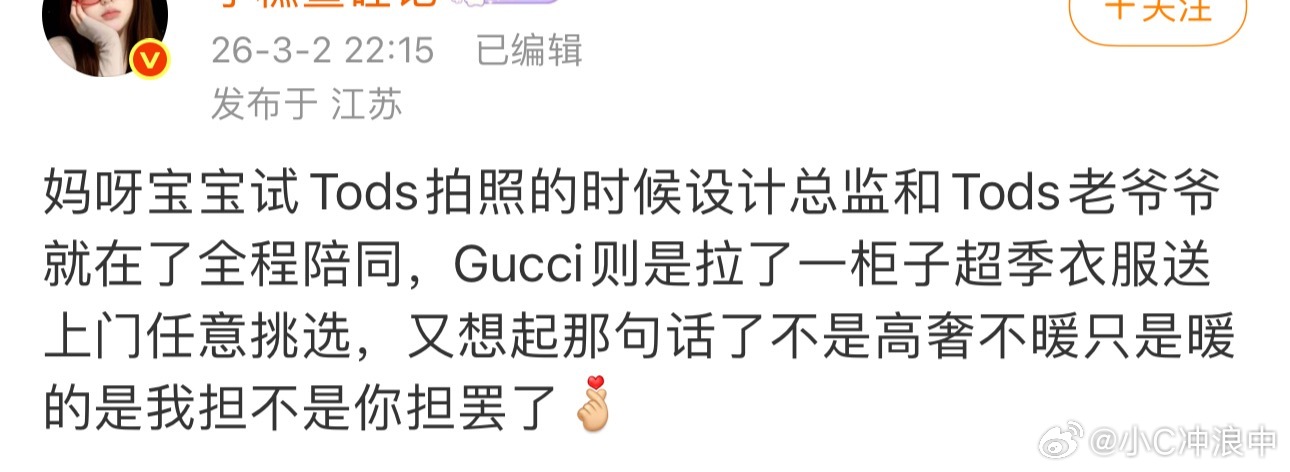 肖战最佳穿搭肖战米兰时装周 肖战这时尚圈⭕待遇和排面真的顶满了!谁爽了TOD'S拍照的时候设计总监和创始人全程陪同,Gucci则是拉了一柜子超季衣服送上门任意挑选,量体裁衣!所以不是高奢不暖!只是暖的是巨星肖战而不是你担罢了肖战看秀顶级待遇