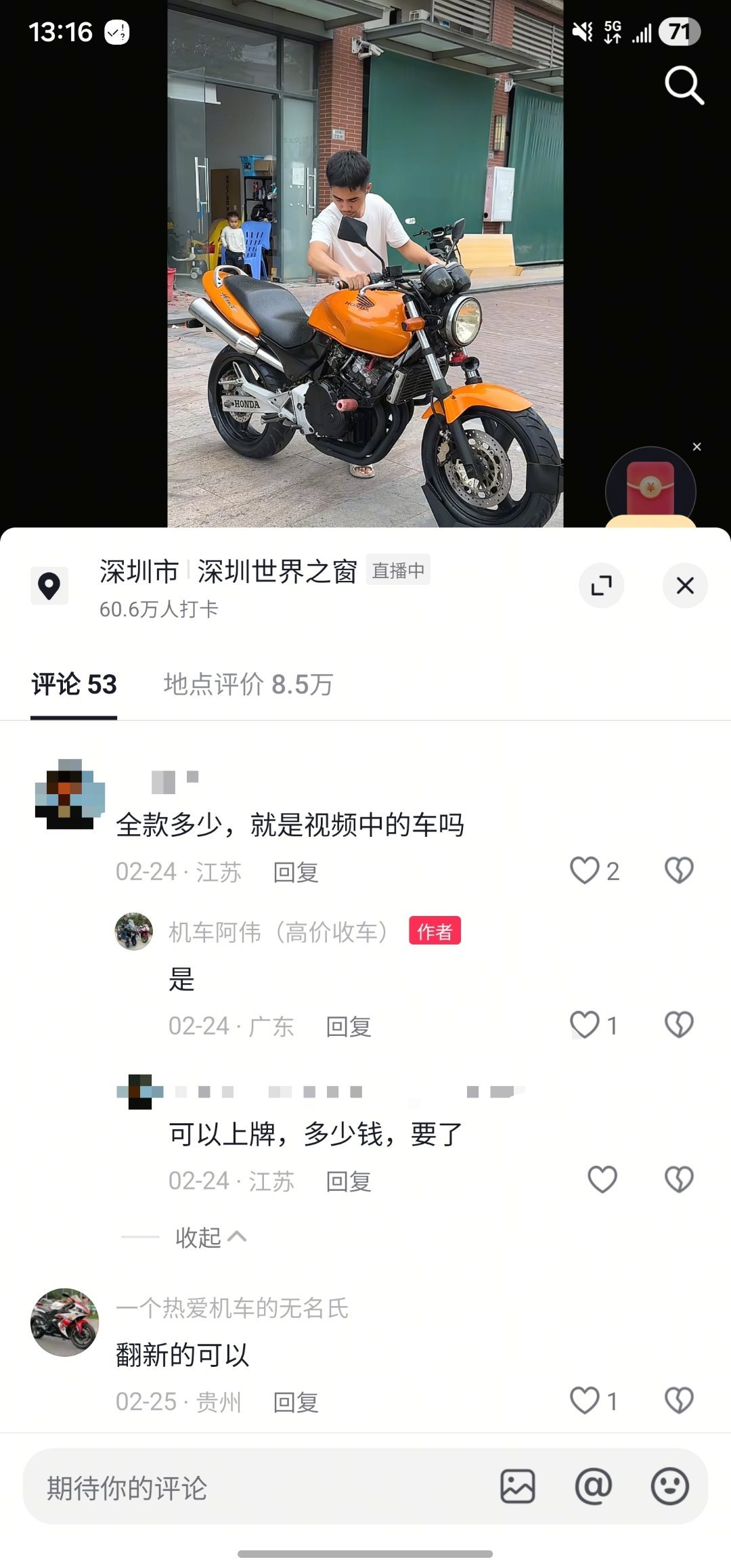 今天又在DY评论区学到了新知识——1、奔驰被淘汰了;2、小黄蜂250可以上牌哈哈
