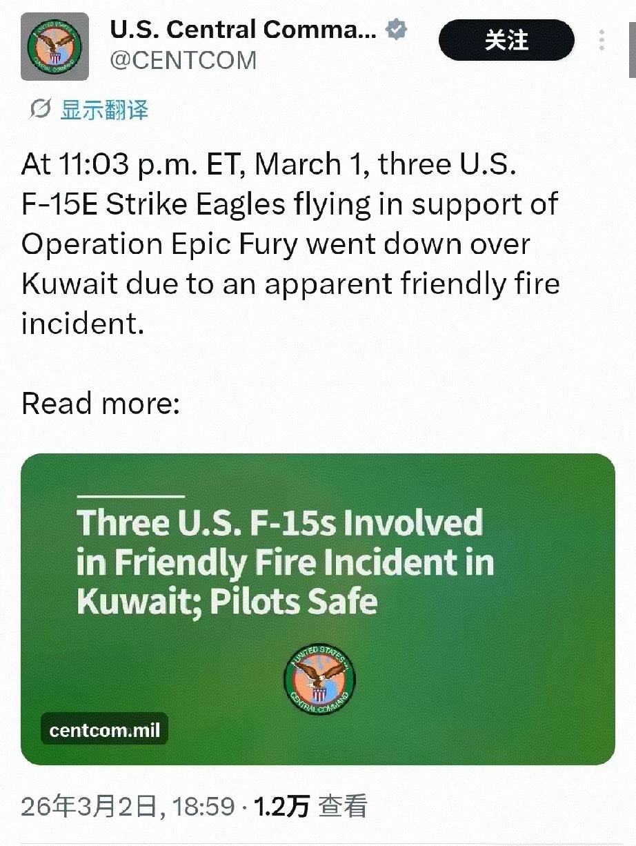 美军司令部:3架F-15E被友军误伤坠毁。 伊朗军方:击落3架美军战机。 到底要信哪一个呢? 如果1架被友军误伤,那我还能信。如果3架都被友军误伤了,那真的是把全世界人的智商按在地上摩擦了。3架被误伤,比1架被击落还让人觉得美军出问题了。 照这样打下去,战损越来越大,会不会最后盖都盖不了,直接爆进战争泥潭里出不来呢? 看看之前以色列炫耀时候的背景墙,那架编号935的MQ-9,也已经被击毁了。不知道会不会又是“友军”误伤呢?