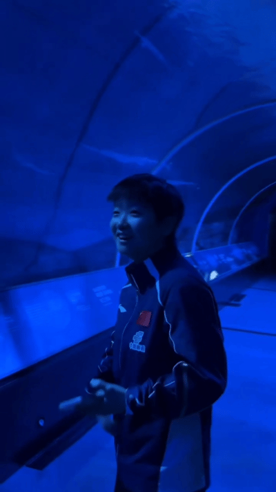 孙颖莎和王楚钦在海洋馆看鲨鱼,两个人状态那是完全不一样,一个笑眯眯的静静地看,一个话超多😁 新加坡大满贯城市宣传照是在海洋馆拍的,在看鲨鱼的时候, 楚钦笑眯眯的看着鲨鱼,一句话也没说,就开心的看, 莎莎脆生生的声音好多,拿出手机,说这个大鲨鱼,开始拍,然后转头说游得有点慢, 嫌人家游得慢😁😁 还听到了莎莎清脆的笑声,太可爱了。 都看到了鲨鱼,开心哦😃