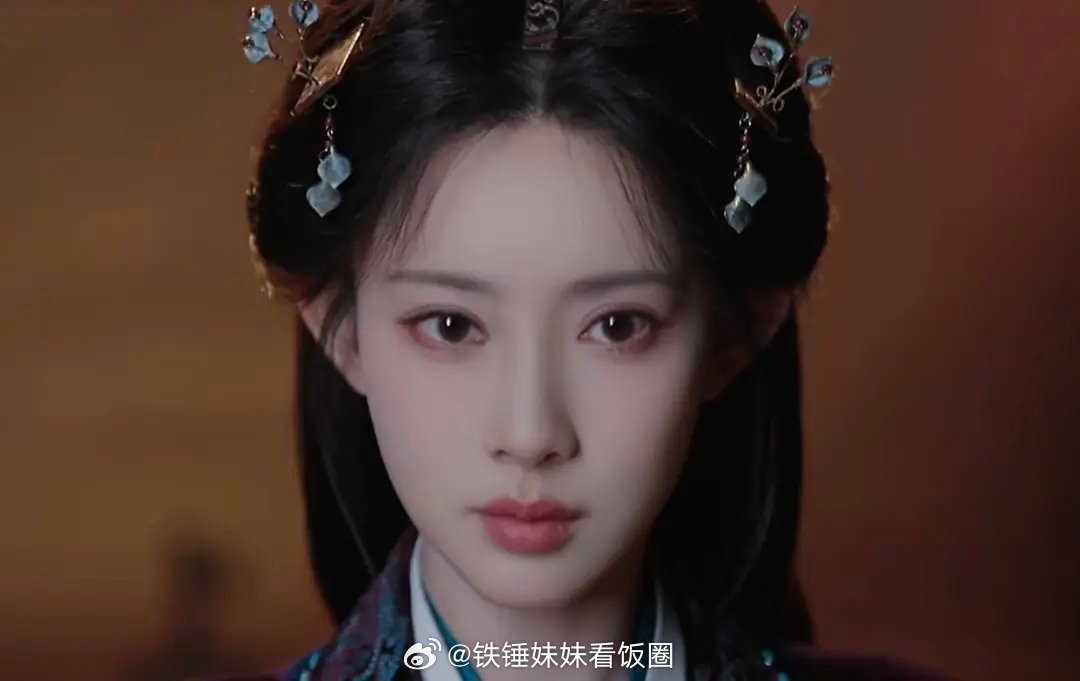 造型简约高级,玉饰配浅色系,藏拙感到位,就是少了点“毒后”锐气。