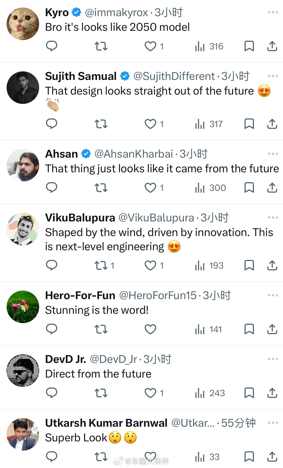 同时,我们发现该车在海外平台也吸引了不少网友热议:“这台车的设计太震撼了!”“看起来像来自未来的车”“感觉玩具成真了”“以前的梦想:买兰博基尼or法拉利;现在的梦想:买兰博基尼or小米”“兄弟,这很像2050年的车”“我想知道它什么时候能量产?”