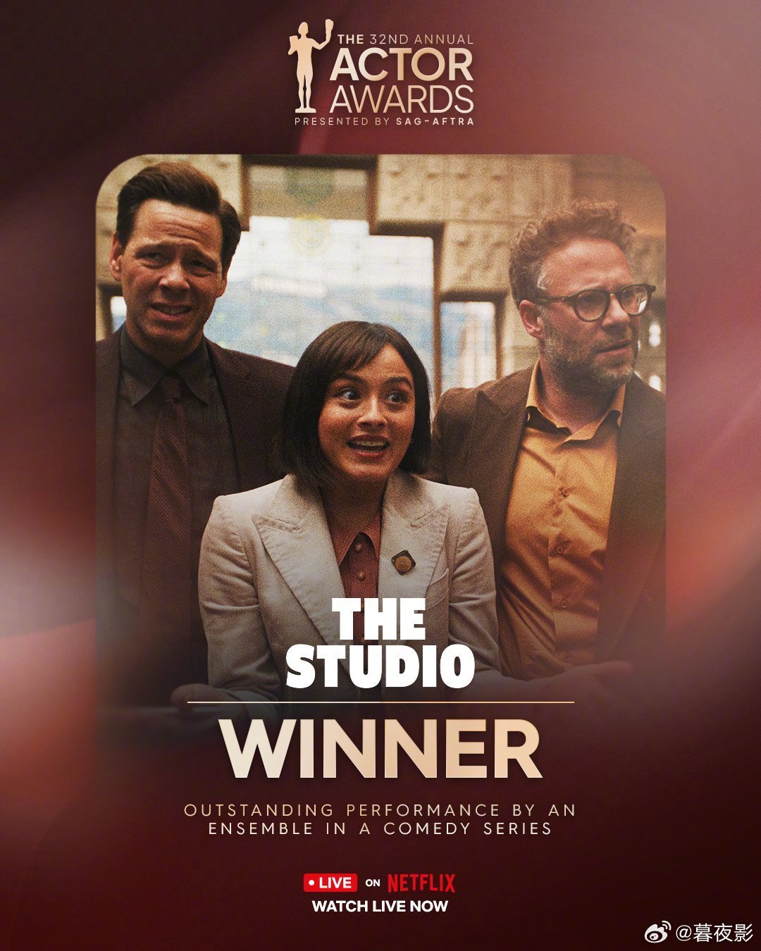 第32届演员奖获奖名单出炉:电影类中,《罪人》获最佳群戏奖,迈克尔·B·乔丹、杰西·巴克利分获最佳男、女主角奖;电视类中,《片厂风云》和 《匹兹堡医护前线》摘下喜剧、剧情类最佳群戏奖,赛斯·罗根、诺亚·怀尔分获最佳男演员奖,凯瑟琳·奥哈拉被追授喜剧类最佳女演员奖。详细名单如下: