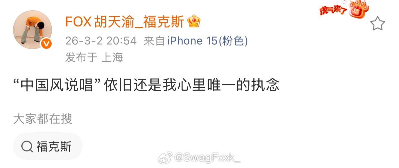 福克斯发文:“中国风说唱”依旧还是我心里唯一的执念 不吹不黑,你觉得福克斯的中国