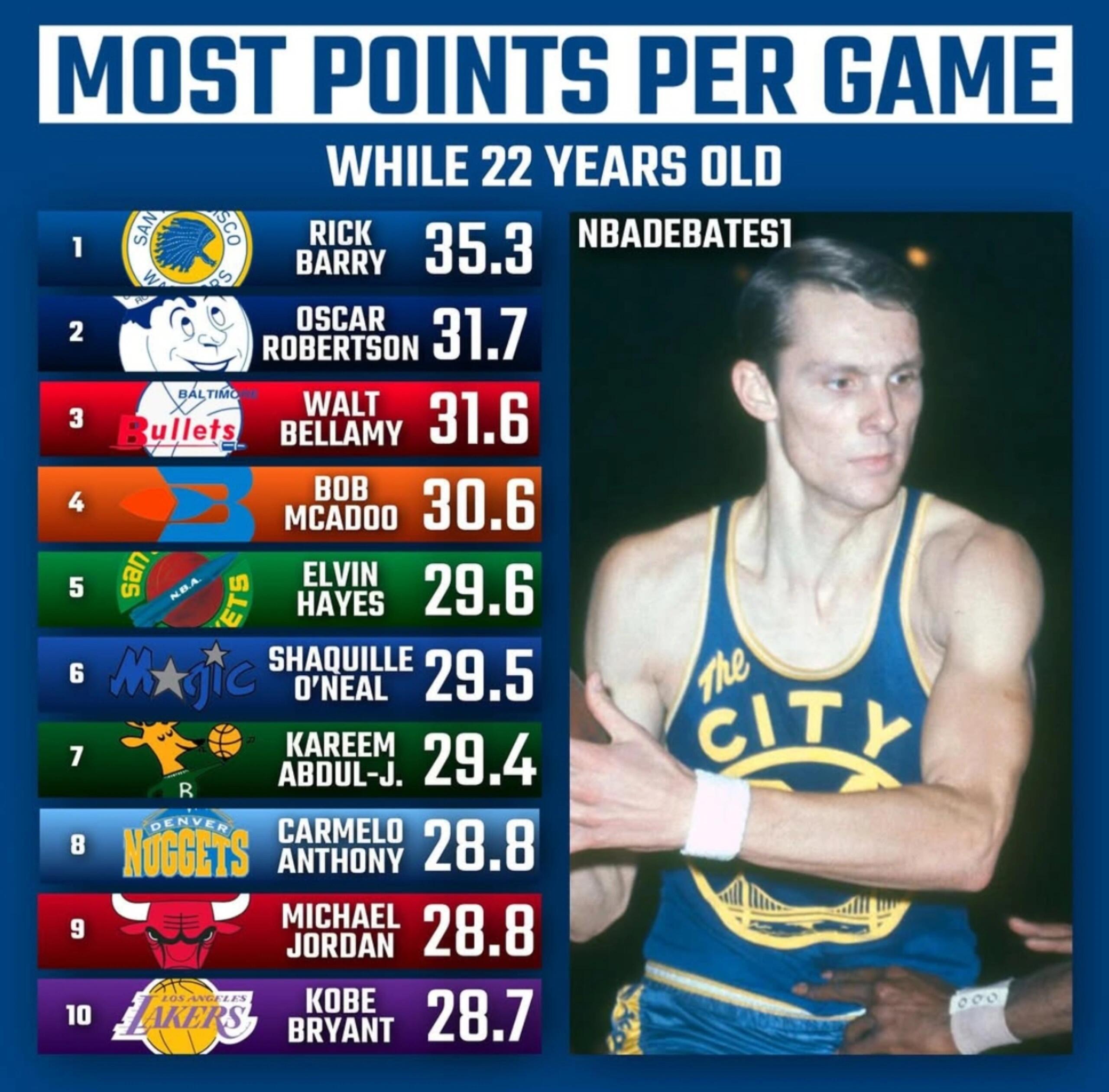 篮天下 18岁-23岁各个年纪的NBA得分王,看好弗拉格!Images via