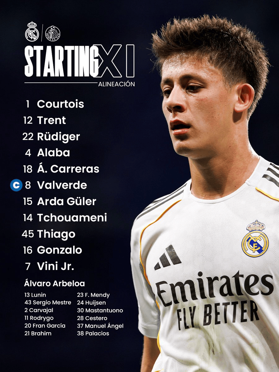 剑南春首发-皇马vs赫塔菲:维尼修斯领衔,居莱尔阿诺德出战