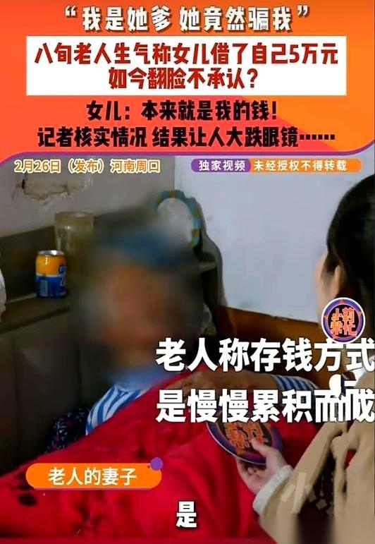 “她坑我!”八旬老爹当众自扇耳光,指着亲生女儿骂。老伴儿更绝,直接躺床上三天不吃不喝,就为那句:“五万块钱,被她昧下了!” 整个村子都知道,这女儿不孝,啃老、赖账。谁敢信,平日里尽心尽力伺候老人的孝顺女儿,竟然被亲爹妈告到记者面前,说她霸占养老钱? 女儿哭得嗓子都哑了:“我赡养这么多年,出钱出力,生病住院都是我跑前跑后!”她指天发誓,根本没欠钱,那五万块钱,是她自己的私房钱,当年怕不安全,存在老爹名下而已。用的是老人账户,跟老人一毛钱关系都没有! 两边都委屈得像刀割,公说公有理,婆说婆有理。一个说被骗了血汗钱,一个说被泼了脏水。记者站在中间,头都大了。家务事最难断,没借条,没证人,光靠嘴皮子,根本掰扯不清。 僵局,死局!眼看这笔钱要成糊涂账。记者突然开口:“去银行,查流水!钱怎么进去的,一查就清清楚楚!” 话音刚落,现场一片死寂。 银行记录一调出来,所有人都傻了。 老两口信誓旦旦地说,五万是他们一点点攒的,陆陆续续存进去的。可流水单上,清清楚楚写着:这五万,是一次性存入!跟老两口说的“慢慢积攒”根本对不上号! 再看那时间和金额,和女儿当年存自己私房钱的说法,完美吻合! 真相,像一记耳光,狠狠扇在老两口脸上。他们之前所有的“激动”和“委屈”,瞬间消失,只剩下沉默。 女儿看着那张流水单,眼泪啪嗒啪嗒掉。钱是清白了,可这被冤枉、被误解的滋味,刀绞一样疼。亲情,是不是也跟着裂开了? 五万块钱能查清,亲情呢?是不是也有张流水单能修补?