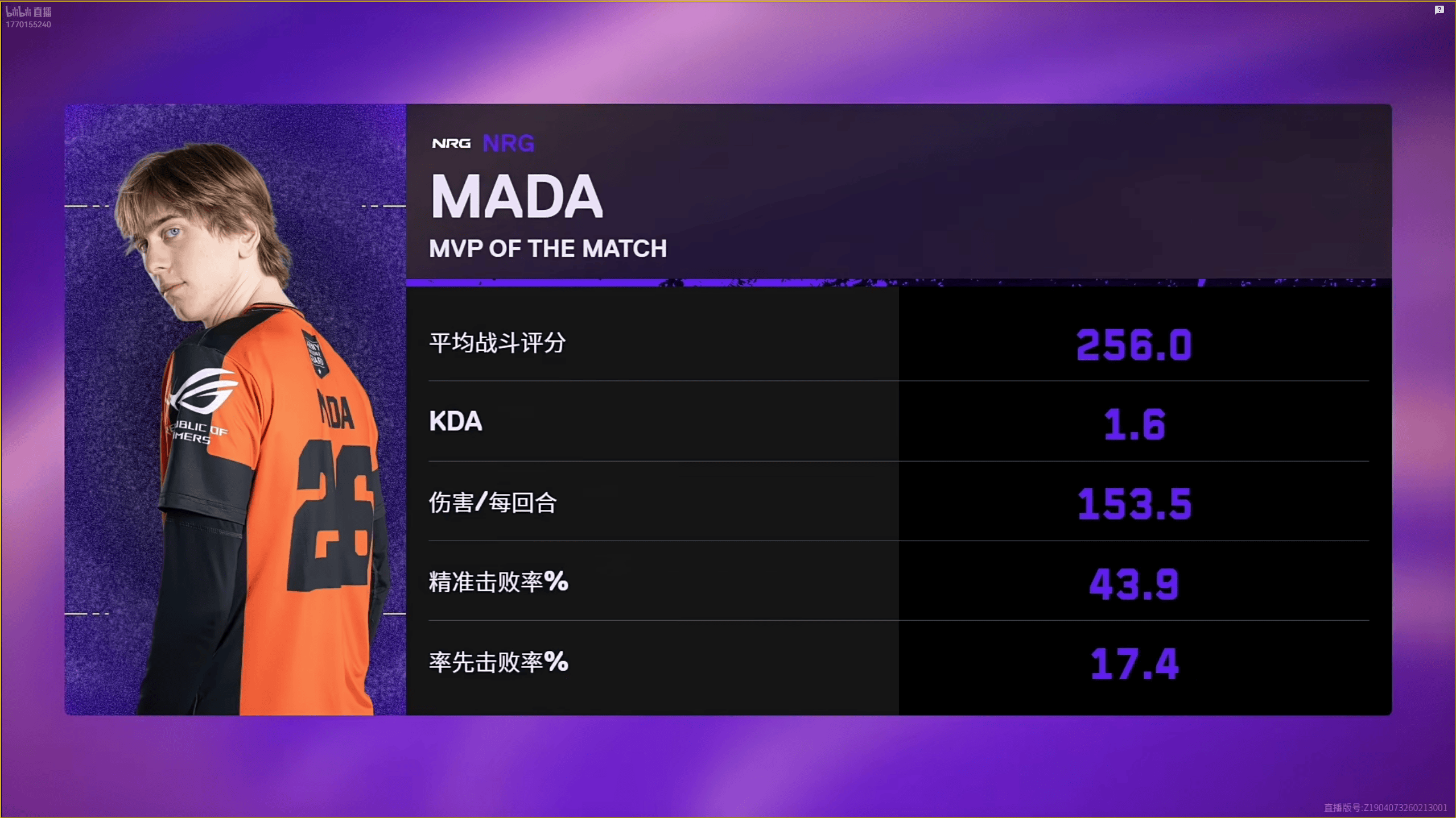 虎扑03月03日讯256战斗评分1.6KDA,mada斩获PRX对阵NRG图二MVP
