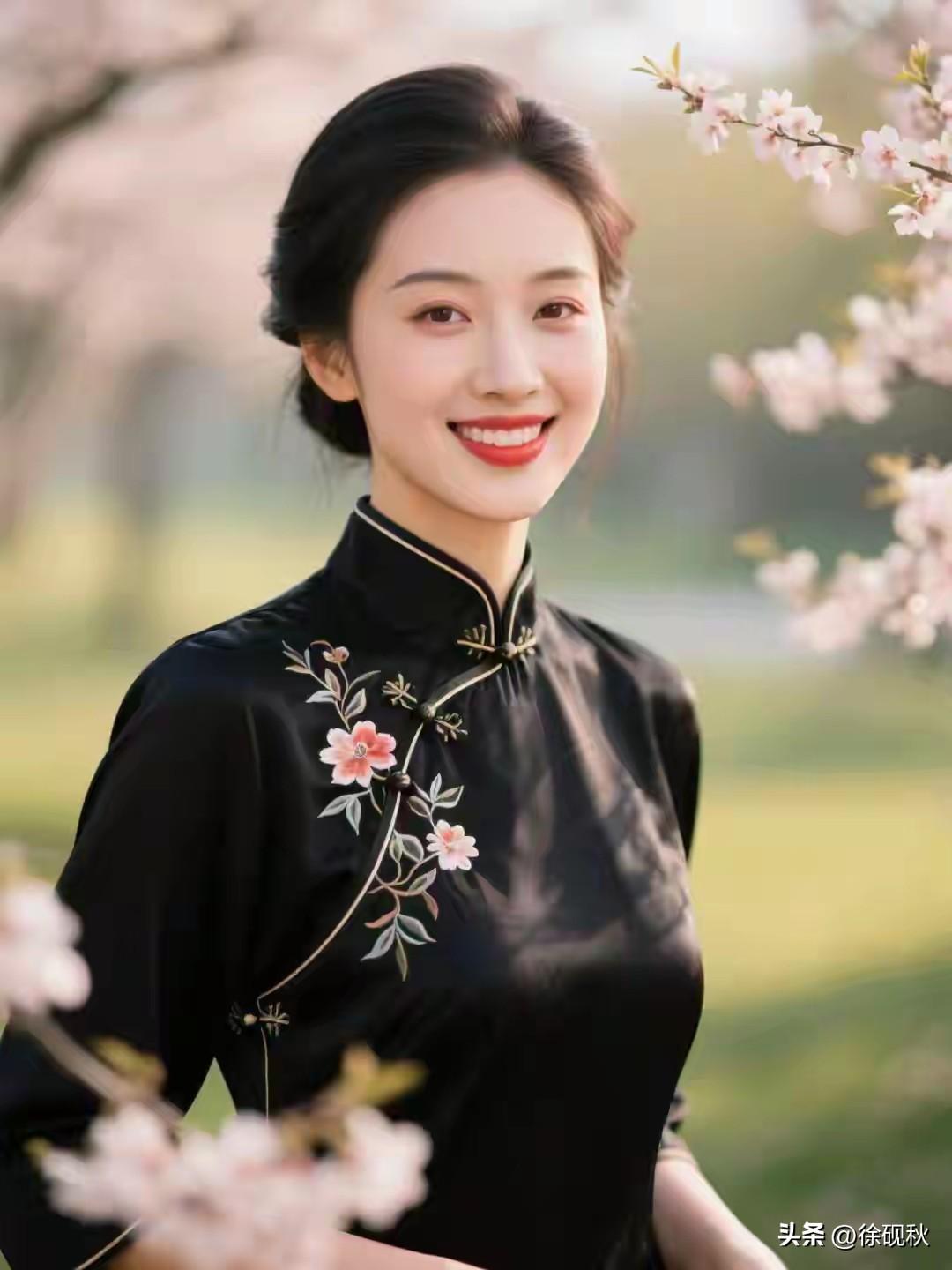 唯有牡丹真国色 花开时节动京城。 旗袍雅致韵味生 红黑牡丹显风情。 中国旗袍,