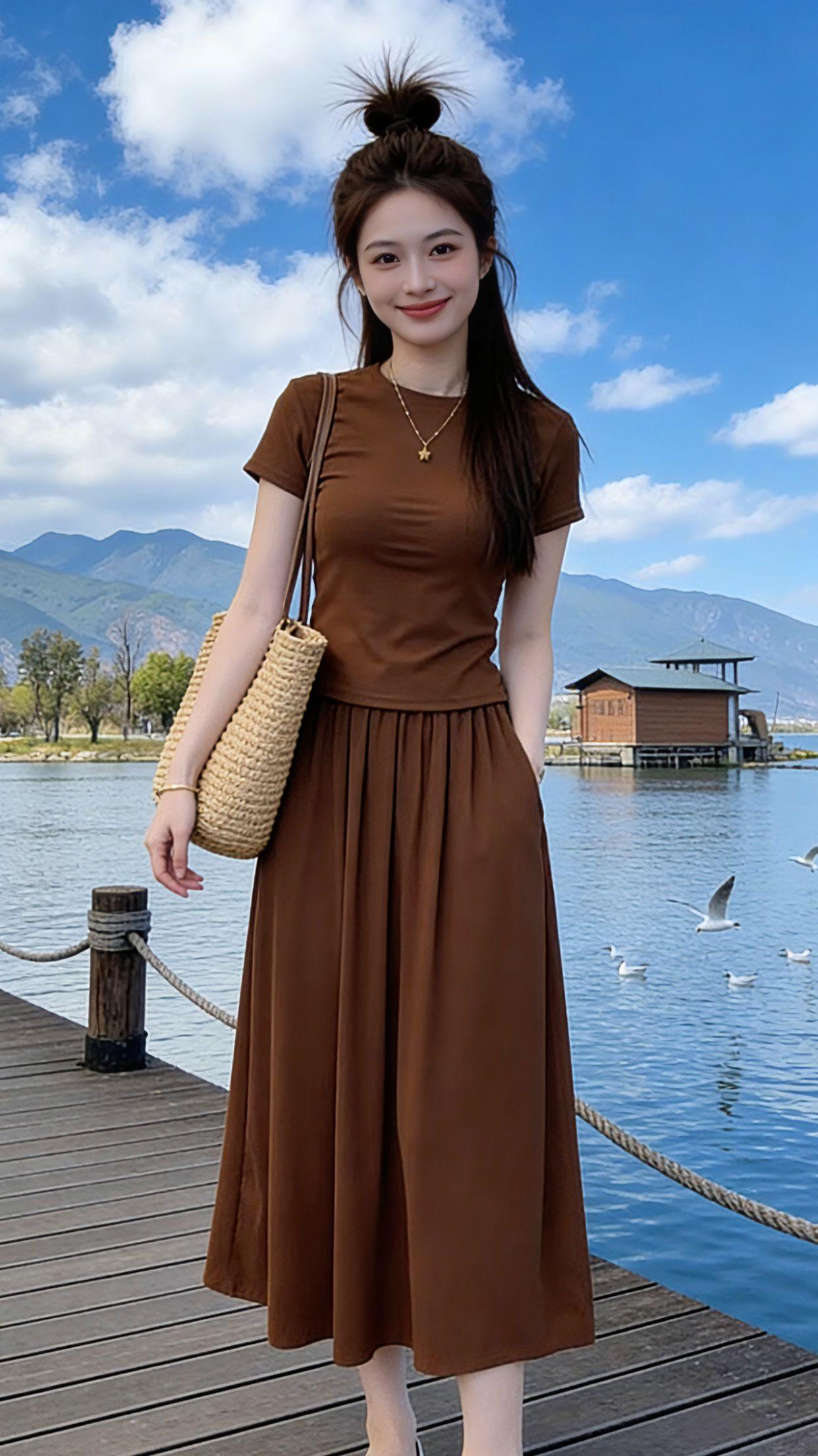 谁懂啊!这套焦糖色两件套真的承包了我整个夏天的出行。软糯透气的面料,上身舒服不闷汗,修身短袖配垂坠感大摆裙,藏肉又拉高腰线,对各种身材都很友好。 日常通勤、周末探店、海边度假都能穿,不用费心搭配,一套上身就是温柔松弛的氛围感,轻松穿出不费力的好气质。 收腰显瘦 穿着得体是一种生活态度 穿美裙赴夏日之约 复工飒气穿搭拿捏了 少女感夏日ootd @抖加🔥上热门🔥dou+🔥热点宝 @DOU+小助手 @图文带货帮扶中心