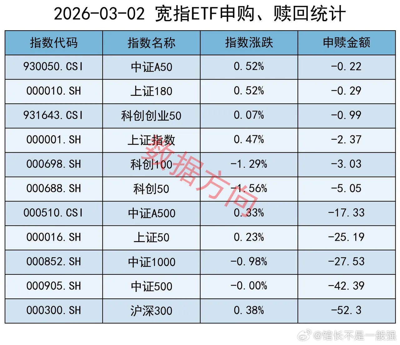 沪深300指数(-52.3亿)、中证500指数(-42.39亿),净赎回居前。