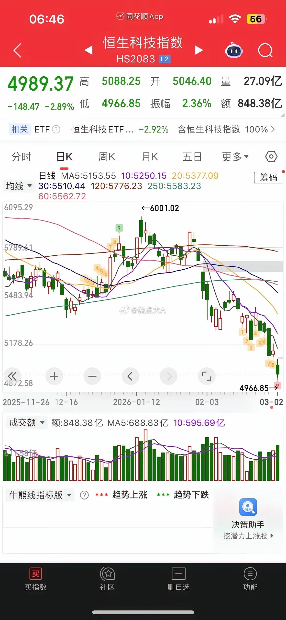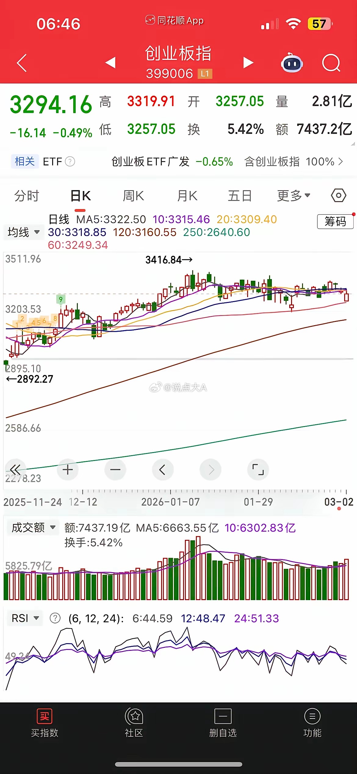 一觉醒来,美元大涨,白银大跌近4%,黄金大涨近2%,已经突破5300美元,中概股普跌,纳指金龙指数跌逾1%,阿里跌逾1%,京东跌0.68%,拼多多跌0.88%,百度跌0.7%,哔哩大跌超2%,小鹏大跌超3%,阿特斯太阳能大跌近3%,富时A50涨0.16%,恒生主连涨0.86%,这样看今天有望迎来一个弱修复,而港股恒科有望高开近1个点。昨晚美股三大指数涨跌不一,道指跌0.15%,纳指涨0.36%,大型科技股普跌,英伟达大涨近3%,特斯拉涨0.2%,甲骨文大涨超2%,阿斯麦大跌近2%,台积电跌逾1%,苹果涨0.2%,微软涨超1%,AMD跌逾1%,美光科技微涨,闪迪大跌超2%,西部数据大跌近3%昨天三大指数涨跌互现,市场再现二八分,沪指在油气、贵金属等权重的助力下,逼近前高附近,创业板走出三连阴,但获60日均线支撑明显,微盘股大跌超3%,两市成交额重回3万亿,内资净流出近1200亿,板块上昨天周期股全线爆发,三桶油历史首次集体涨停,化工板块反复活跃,军工、CPO延续强势,Al应用、机器人概念延续调整,目前看市场主要赚钱效应还是集中在周期股方向,科技股方向受地缘冲突压制明显,整体呈现结构性轮动态势,目前看在中东局势尚未明朗前,市场整体风格仍偏防御避险题材为主,也就是大票强于小票。点赞就是对大A最大支持!