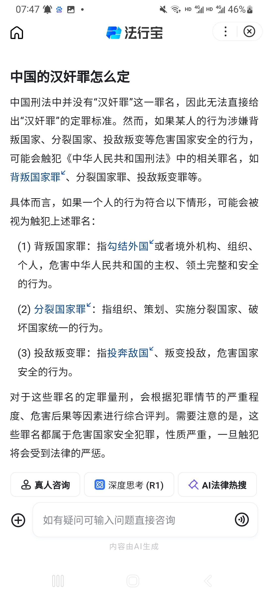 这个老女人是谁?女版司马南吧?面目狰狞,声嘶力竭。鼓动一群U型锁对国人喊打喊杀。 汉奸不是独立罪名,基本可以认为是投敌叛变罪,。 但是即使是罪犯,也要经过国家司法机关的审判才能执行。 都21世纪了,这个老登还在想行私刑。