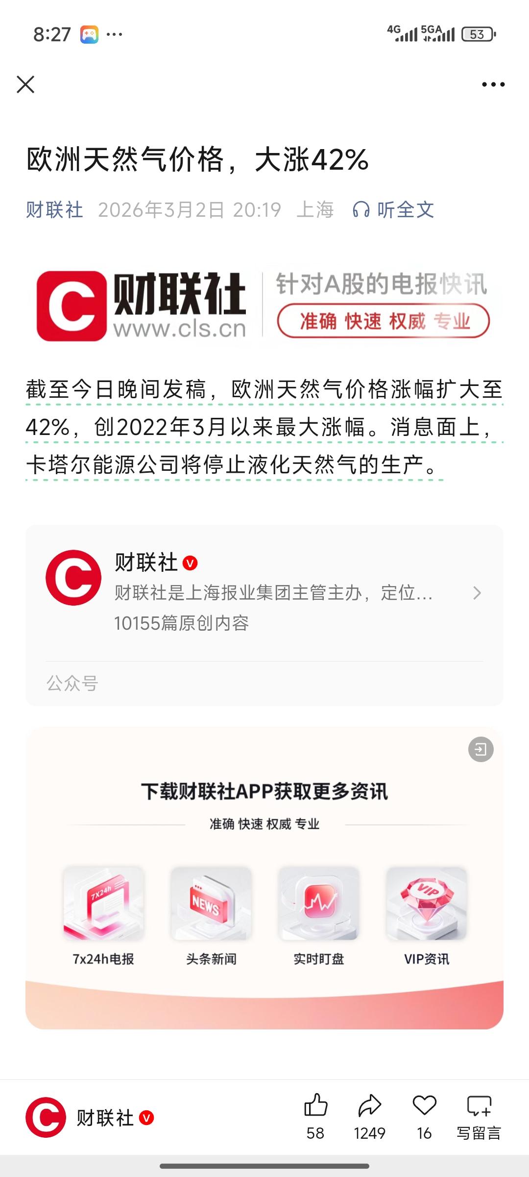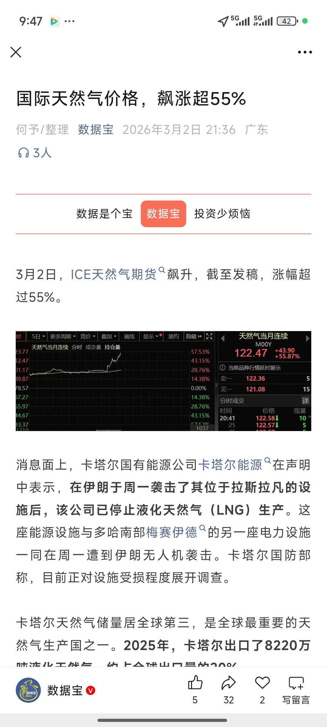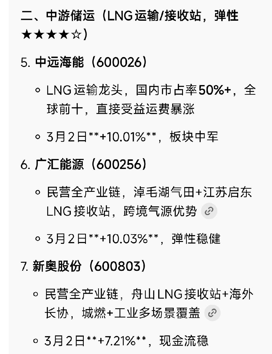 欧洲油气股暴涨!卡塔尔LNG停产+双战争发酵 天然气成最强主线 3月2日欧洲油气板块全线大涨,国际油价大幅冲高,欧洲天然气期货单日暴涨超50%,全球能源市场迎来剧烈震荡。 重磅消息引爆行情:全球第二大LNG出口国卡塔尔能源公司宣布,因设施遭无人机袭击,全面暂停LNG生产,全球约20%LNG供应直接中断;以色列气田同步停运,霍尔木兹海峡航运受阻,能源供应链遭遇双重打击。 地缘冲突持续升级,美伊对峙进入长期对抗态势,阿富汗与巴基斯坦边境战事不断,两大战场推高全球避险与供应担忧。天然气因库存偏低、替代难度大,弹性远超石油,成为本轮行情核心受益品种。 投资逻辑清晰:供应端中断叠加地缘风险,油气价格维持高位,上游开采、LNG运输与全产业链龙头最为受益。A股天然气、LNG板块同步走强,资金聚焦低库存、紧供给下的核心标的,短期回调仍是布局窗口。 油气股上扬 美股石油股 煤炭石油板块 液化天然气项目 欧洲停购俄原油 中国天然气价格 美欧天然气价格 燃气行情 石油能源股 油气行情 避险天然气价格 俄欧天然气博弈 lng市场行情 lng价格行情 天然气价格战 LNG价格风险 石油天然气集团 油气资源板块 油气ETF 石油天然气基金