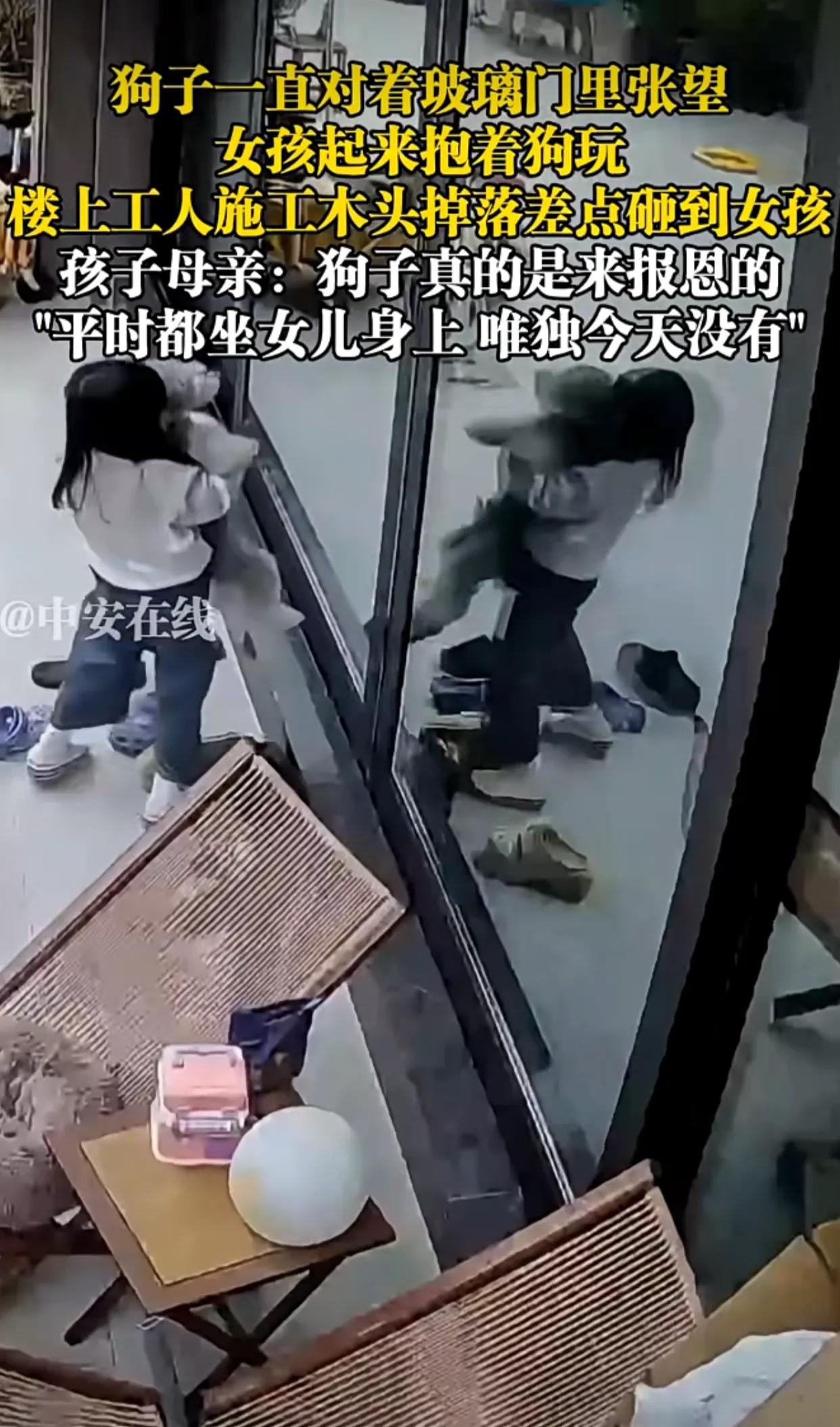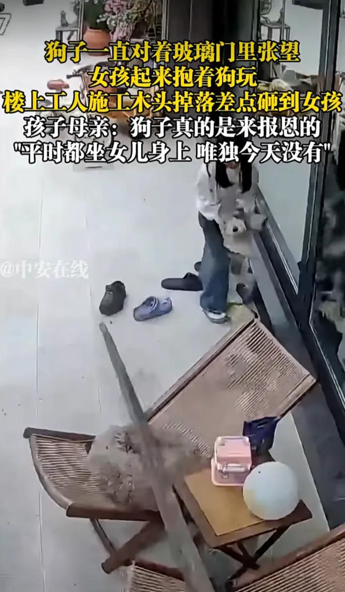 “万物有灵”!3月2日,重庆。狗子一直对着玻璃门里张望,女孩起来抱着狗玩,楼上工人施工木头掉落差点砸到女孩,孩子母亲:"狗子真的是来报恩的,平时都坐女儿身上,唯独今天没有"。 监控画面里的一幕看得人后背发凉。原本女孩正坐在藤椅上,往常都会黏在她身上的小狗,那天却反常地站在玻璃门边,不停对着门里张望,还发出细碎的呜咽声。孩子被它的异常举动吸引,起身走过去想把它抱起来玩,就在她刚离开椅子的瞬间,一根长长方条从楼上坠下,狠狠砸在她刚才坐着的位置。 差一点,被砸中的就是这个还在撒娇的小女孩。妈妈事后回想起来都忍不住后怕,她说这只小狗是女儿从小养大的,平时总爱赖在女儿身上撒娇,那天却像提前感知到了危险,用自己的方式把孩子引开了。网友们都在说这是“狗狗报恩”,是它用本能救了小主人一命。 更多人则把矛头指向了施工方,好好的施工怎么会让木头从高空坠落?如果不是小狗的“反常”,这场意外就会变成无法挽回的悲剧,这种安全隐患,才是最该被追责的地方。 我们愿意相信小动物的直觉,相信它和小主人之间那份超越语言的羁绊。狗狗的听觉、嗅觉还有对环境变化的灵敏度,本就比人类要强得多,它可能不懂什么是高空坠物,却能提前捕捉到空气中的异常震动、气味变化,甚至是人类察觉不到的危险信号,并用自己的方式提醒、引导小主人离开危险区域。正是这份刻在骨子里的警觉,让它在关键时刻拉了孩子一把,不然这场意外的后果,真的不敢去想。 这份温暖的“报恩”,不该成为掩盖安全漏洞的遮羞布。高空坠物从来不是“意外”两个字就能轻描淡写带过的,它是对生命的漠视,是管理的失职,每一次侥幸背后,都藏着可能发生的悲剧。我们庆幸小狗的警觉换来了平安,更希望能借此敲响警钟,让施工规范起来,让高空坠物不再成为悬在人们头顶的利剑,让每个孩子都能在没有危险的环境里长大。 各位读者你们怎么看?欢迎在评论区讨论。