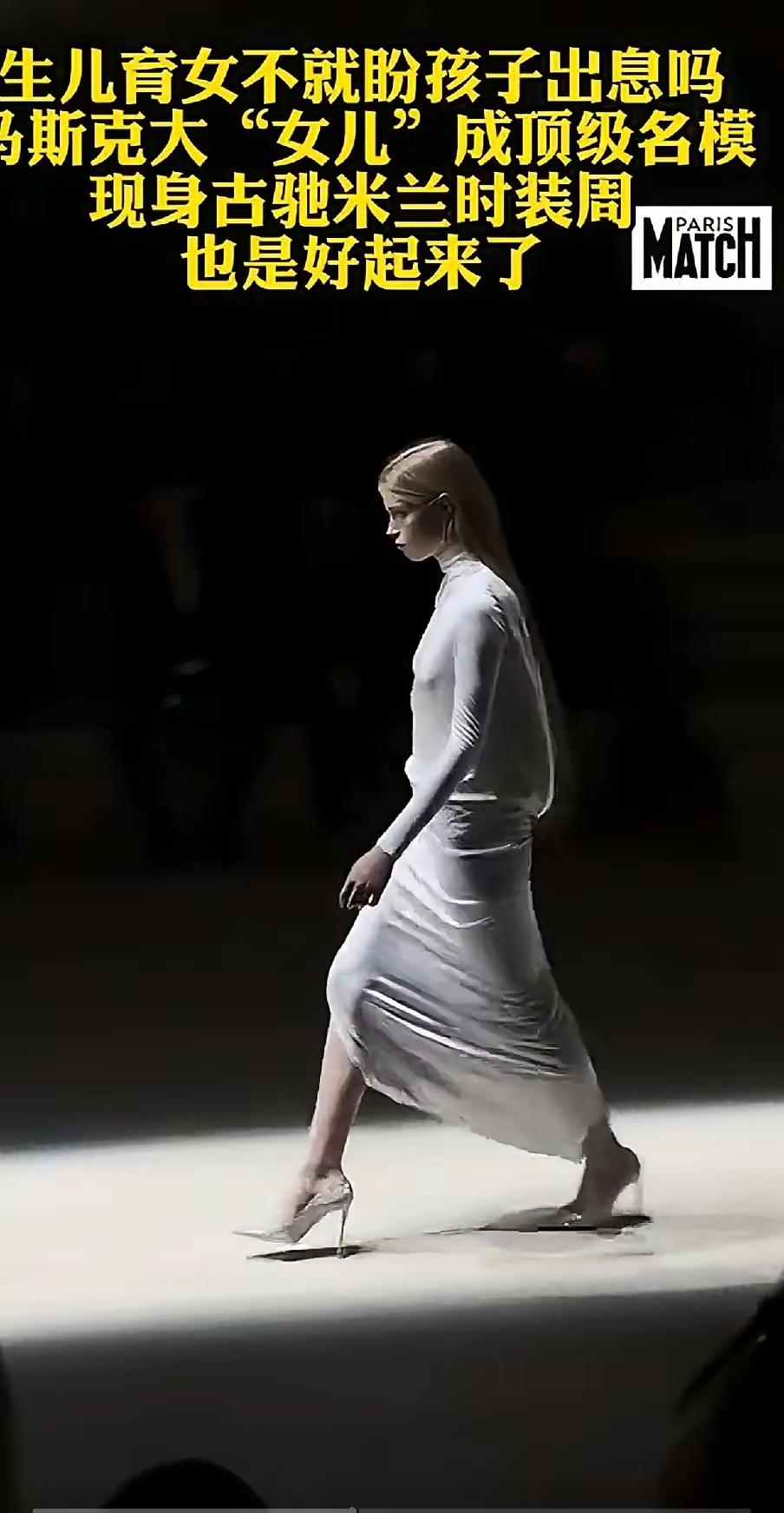 马斯克的大儿子,不,是长女在女儿走上了米兰时装周T台。 当薇薇安·威尔逊踩着Gucci的秀场音乐,在米兰时装周的聚光灯下走出第一步时,那个被马斯克称为“被觉醒病毒洗脑”的“长子泽维尔”,已经彻底死了。取而代之的,是一个用身体和脚步,撕碎首富爹滤镜的反叛者。 马斯克曾在公开场合抱怨“像失去了这个孩子”,但他从来没明白,薇薇安从未“失去”,只是主动选择了“抛弃”他。从2020年公开跨性别身份,到2022年改名换姓随母姓,再到如今登上国际顶级秀场,她的每一步都在精准地踩在马斯克的“爹味”痛点上。 那些说“生儿育女不就盼孩子出息”的论调,在薇薇安面前显得格外讽刺。马斯克眼中的“出息”,是继承他的商业帝国,延续他的霸权叙事;是让孩子成为他野心的延伸,是用4000亿遗产绑定下一代的人生。但薇薇安的“出息”,应该是挣脱父权枷锁,活成自己想要的样子。她在洛杉矶合租、自己付房租,拒绝马斯克的一分钱;她签约CAA,从纽约时装周走到米兰,用专业实力打破“靠爹上位”的质疑。 这场Gucci秀,根本不是什么“父慈女孝”的证明,而是一场精心策划的“反父宣言”。那件白色单袖高领开叉裙,像一件战袍,勾勒出她的身体线条,也划清了她与马斯克家族的界限。当她在Instagram上轻描淡写地写下“我刚为Gucci走秀,笑死”时,那种漫不经心的嘲讽,比任何控诉都更锋利:你是掌控火星的科技巨擘,我是走在米兰T台的模特;你用财富定义成功,我用自我定义人生。 马斯克可以发射火箭,可以收购推特,可以操控舆论,但他永远无法掌控女儿的人生。他以为用金钱和地位就能绑架一切,却没想到,他的“大女儿”用一场秀,就把他的“爹味说教”踩在了脚下。 现在,马斯克的“出息论”碎成了渣。而薇薇安,这个曾经被他宣告“死亡”的孩子,如今在时尚界活成了一束光。她的存在,本身就是对“父权至上”的最有力解构:当首富的女儿都能拒绝父权,还有什么“出息”,比忠于自我更重要? 不过,显然是幕后一帮专门想恶心马斯克的控制意识形态的出手了。