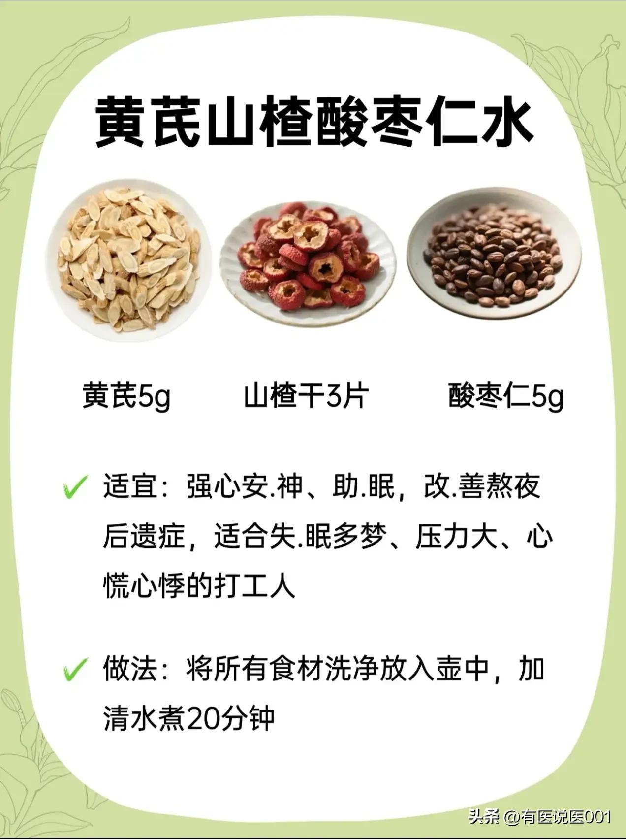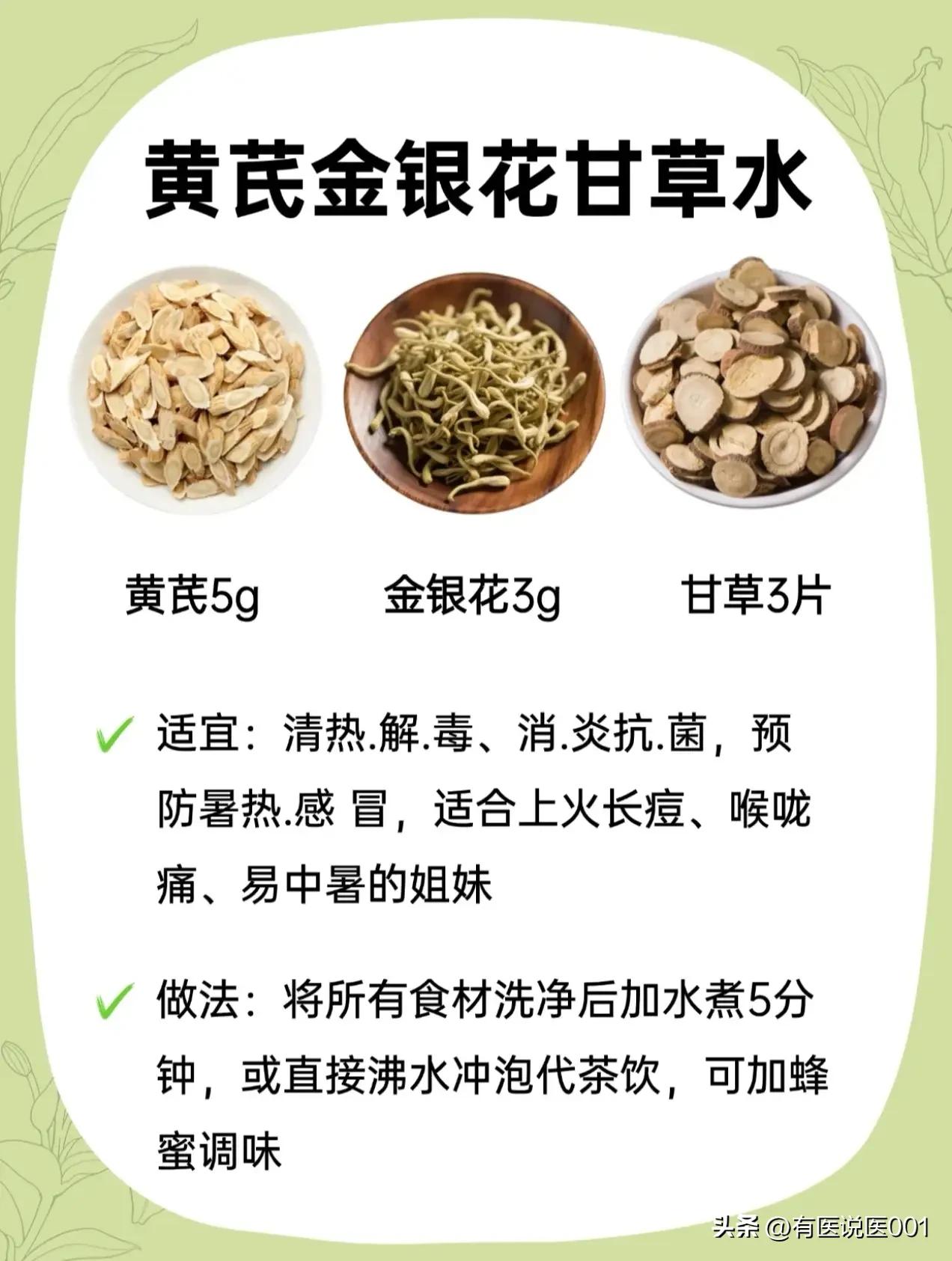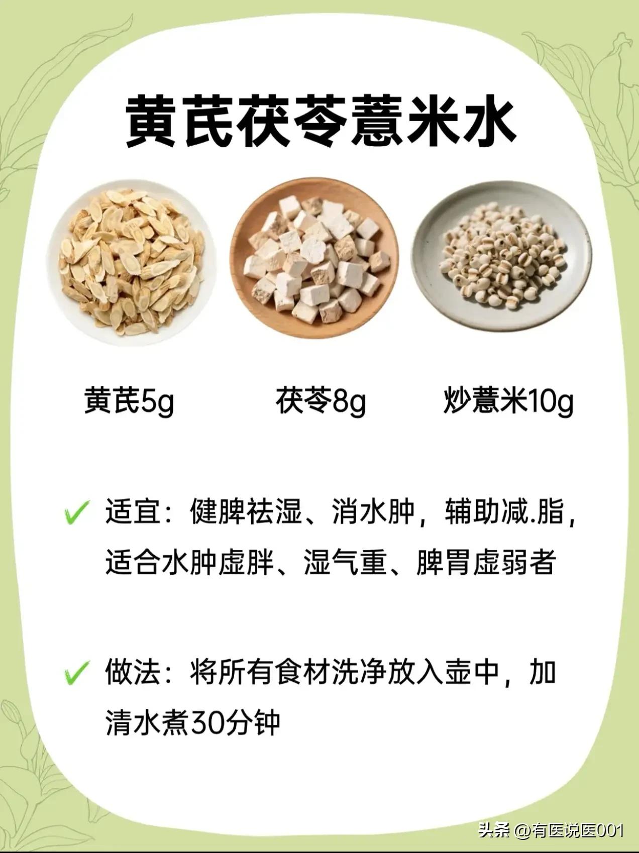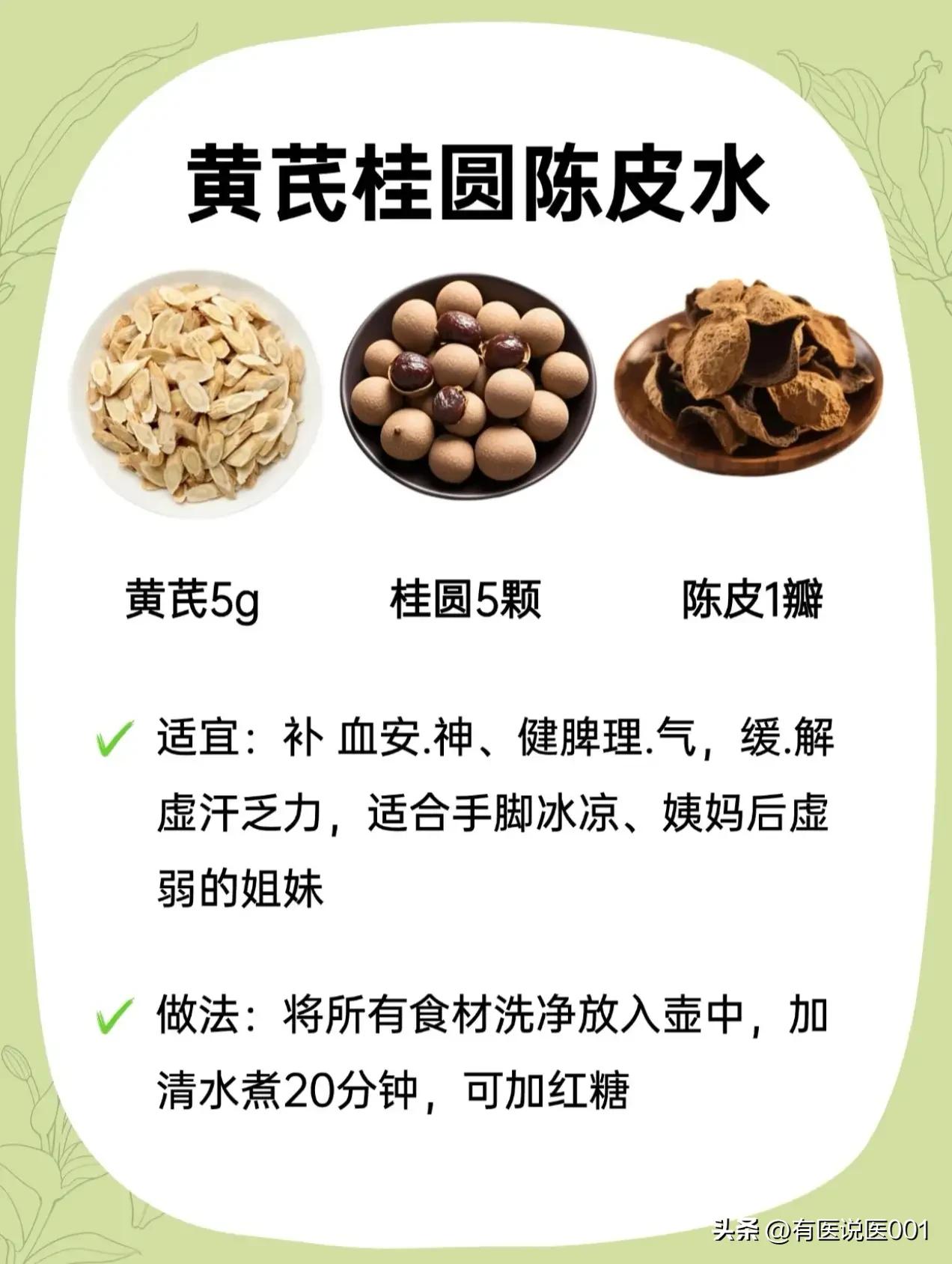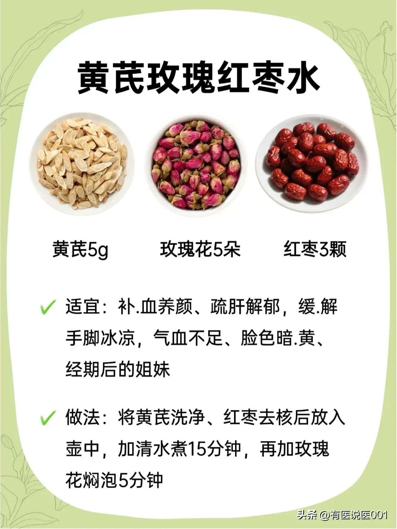 平民补气王“黄芪”,6款搭配对症喝,日常养生超省心 很多人只知道黄芪能补气,却不知它搭对“伙伴”,功效能翻倍!不用复杂药膳,煮壶水就能喝,针对不同小毛病,今天把实用搭配全整理好,照着喝就行~ ✨ 熬夜党救星:黄芪+枸杞+麦冬 经常熬夜、口干舌燥、睡不好?这款是补气养阴的“灭火器”,适合阴虚火旺、容易疲劳失眠的人,煮15分钟,喝完整个人都润了,连心烦的小情绪都能缓一缓。 ✨ 气血不足姐妹款:黄芪+玫瑰+红枣 脸色暗黄、手脚冰凉、经期后虚弱?这款是“养血美颜水”,补血同时还能疏肝解郁,帮你把流失的气血补回来。红枣记得去核,煮15分钟后加玫瑰焖5分钟,香气足还暖身。 ✨ 湿气重消肿款:黄芪+茯苓+炒薏米 水肿虚胖、大便黏腻、脾胃弱?这款是“祛湿健脾水”,帮身体排走多余湿气,消水肿还能调理脾胃,特别适合久坐不动、湿气重的人,煮30分钟更出味。 ✨ 上火消炎款:黄芪+金银花+甘草 长痘、喉咙痛、怕中暑?这款是“清热解毒水”,温和消炎,适合容易上火、换季感冒的人,煮5分钟或直接用沸水冲泡,加一点蜂蜜,好喝又下火。 ✨ 体虚安神款:黄芪+桂圆+陈皮 姨妈后虚弱、盗汗乏力、手脚冰凉?这款是“补血理气水”,补气血还能健脾,帮你缓解体虚疲惫,煮20分钟,加点红糖更暖,适合产后或经期后调理。 ✨ 失眠打工人款:黄芪+山楂+酸枣仁 熬夜后心慌、失眠多梦、压力大?这款是“强心助眠水”,安抚情绪还能补心气,帮你改善熬夜后遗症,煮20分钟,睡前喝一杯,睡个安稳觉。 ⚠️ 重要提示:这些都是日常调理代茶饮,不能替代药物治疗!感冒发烧、体质偏热(容易上火)、孕妇等特殊人群,一定要先咨询专业中医师,根据体质选,别盲目喝哦~养生要温和,对症才有效~