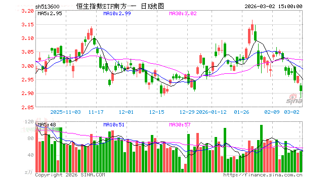 3月2日,恒生指数ETF南方(513600)跌1.89%,成交额1.44亿元。当日份额增加500.00万份,最新份额为7.97亿份,近20个交易日份额减少4300.00万份。最新资产净值计算值为23.29亿元。