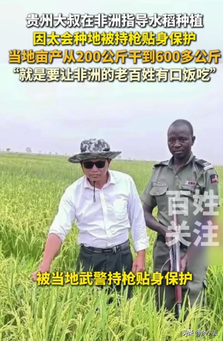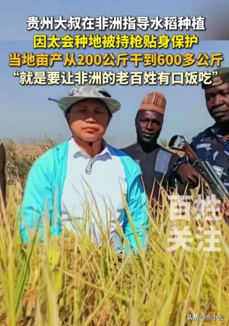 真不是爽文!贵州大叔在非洲种地,被持枪贴身保护,看完我直接热血了🔥 贵州一位普通农民大叔杨秀刚,去非洲尼日利亚教人种水稻,硬生生把亩产200公斤干到600多公斤,翻了三倍多! 当地老百姓都快把他当神了,政府直接派持枪武警24小时跟着,走到哪护到哪,就怕这位“宝贝专家”出一点事。 人家不是啥高学历专家,就是咱们中国土生土长的农民,靠一双老手、实打实的种田经验,手把手教当地人育苗、插秧、管水,把中国杂交水稻的本事扎在非洲大地上。 以前当地种粮连吃饱都难,现在不仅够吃,还能卖钱增收,大叔带去的种子都被叫做“金种子”。 这哪是种地啊,这是凭本事让别人离不开,靠技术赢得最高礼遇! 不是小说,不是剧本,就是咱们中国老百姓最朴素的厉害: 凭手艺吃饭,靠实干立足,走到哪都受人尊敬。 为中国农民点赞[赞] 为中国农技骄傲[赞]
