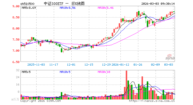 3月3日,中证500ETF(510500)开盘涨0.08%,报8.740元。中证500ETF(510500)重仓股方面,英维克开盘涨0.55%,信维通信跌0.55%,巨人网络涨0.08%,航天电子涨0.18%,中矿资源跌1.55%,中国卫星跌1.02%,先导智能涨0.51%,卧龙电驱跌0.32%,赤峰黄金跌2.80%,兴业银锡跌5.51%。