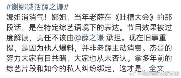 粉丝澄清薛之谦内涵张杰粉丝称薛之谦节目效果被过度解读谢娜喊话薛之谦 薛之谦粉丝回
