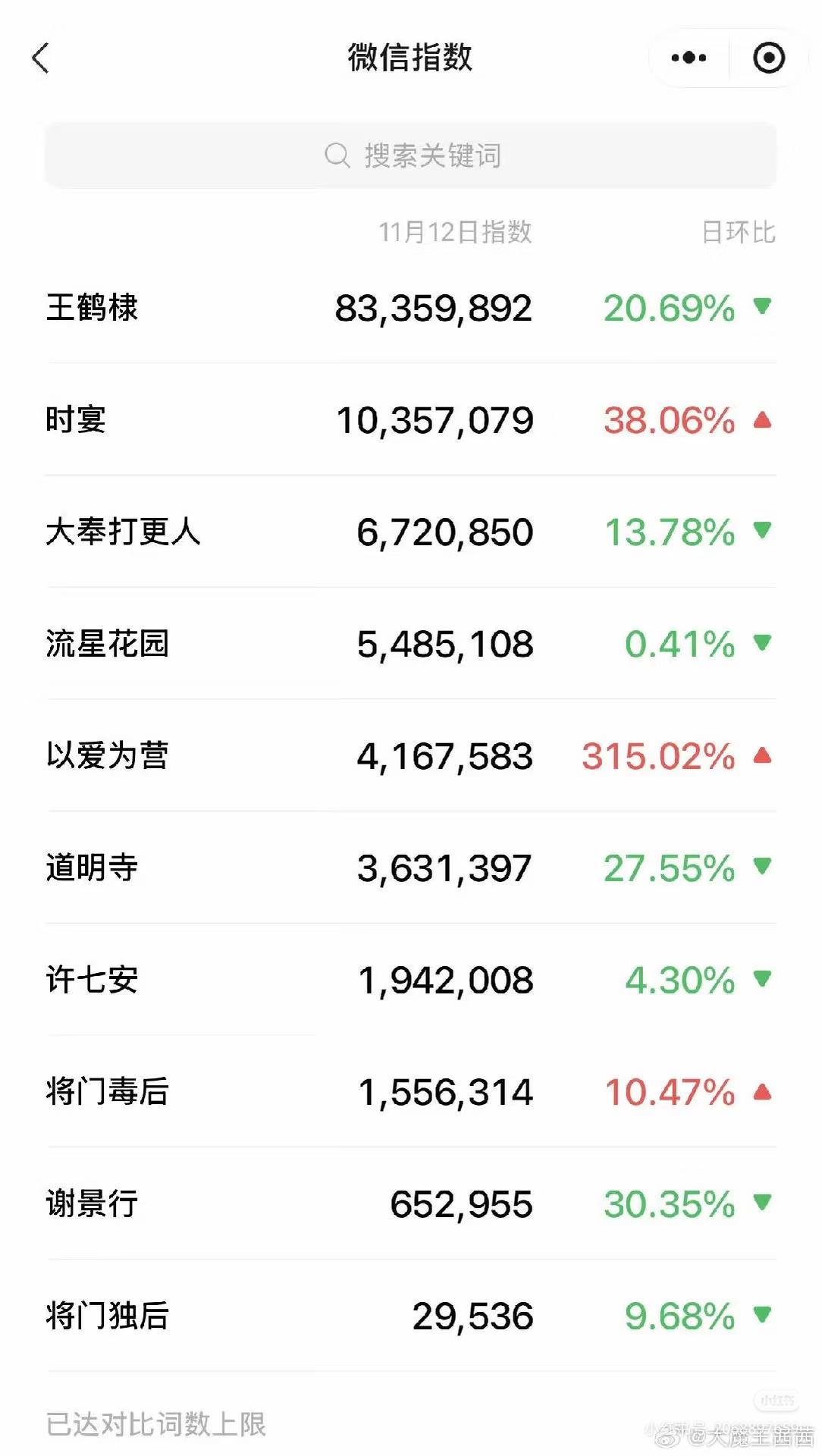 古言最大的IP,也不过如此。 对接确认哪天微信指数,百度指数,几乎为零。 哪来的书粉,都是嫉妒破防的黑子。