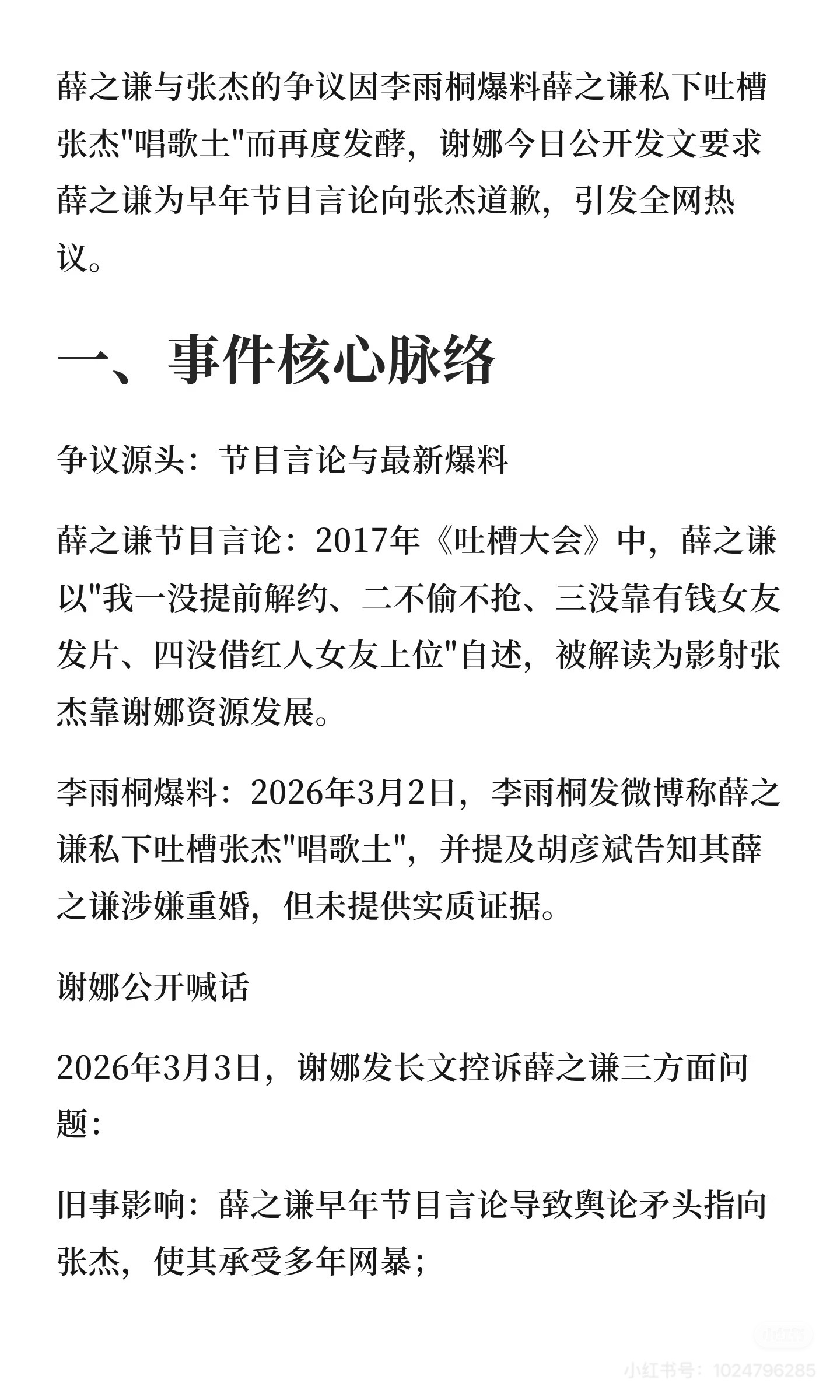 谢娜喊话薛之谦正月十五早上谢娜发长文表示要求薛之谦向无端被牵扯的张杰正式道歉!并指责其因个人感情纠纷重提旧事导致张杰无辜卷入舆论风波。