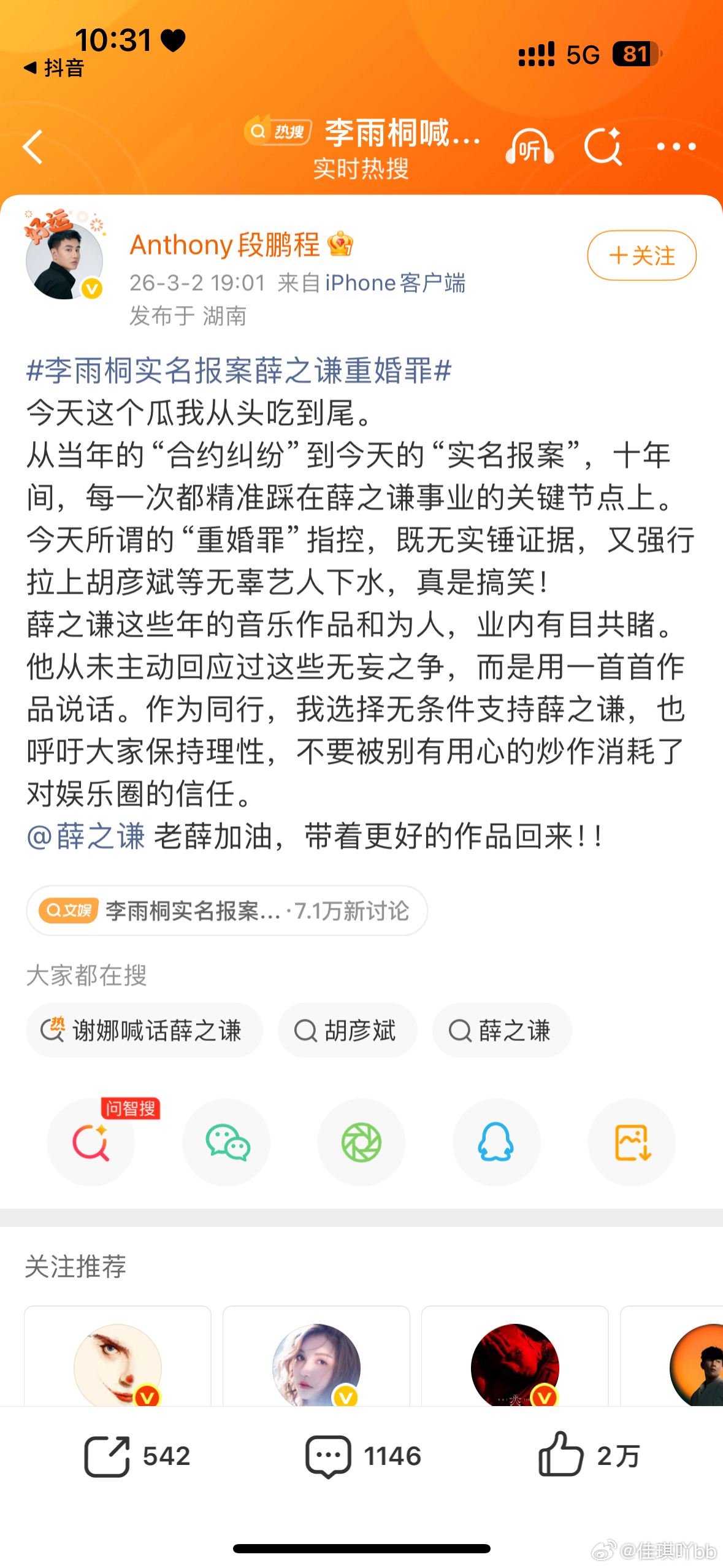 谢娜喊话薛之谦两头吃流量,你不觉得恶心吗🤢薛之谦 张杰