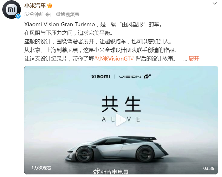 小米汽车刚刚发布了一支 Xiaomi Vision Gran Turismo 设计纪录片讲述了小米 Vision GT 背后的设计故事