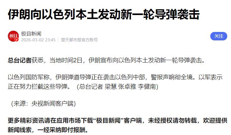 以色列和美国这次真的小看伊朗了!当地时间2日,有个大消息传遍了全世界:伊朗直接宣布,往以色列本土发射导弹了。总台记者第一时间报道,以色列国防军也很快说,伊朗的导弹正在打他们中部,整个以色列都响起了防空警报,刺耳得很,以军还在拼命拦这些导弹。 很多人看了可能会纳闷,伊朗和以色列到底有多大仇,敢直接往对方家里打?而且以色列一直有美国撑腰,还有号称最厉害的防空系统,怎么会被伊朗直接找上门? 其实最关键的就是,以色列和美国,这次是真看轻伊朗了,没把伊朗的底线和实力当回事。 伊朗这次动手,不是脑子一热,是被美以逼得没办法了。伊朗和以色列的仇,已经结了几十年了,从1979年伊朗革命后,两国就不往来了,成了死对头。 以色列是犹太国家,伊朗是伊斯兰国家,信仰和想法完全不一样,伊朗不承认以色列是个正经国家,以色列也一直把伊朗当成最大的威胁。 这几十年,双方一直暗地较劲,以色列偷偷炸伊朗的核设施、杀伊朗的科学家,伊朗就支持一些武装力量牵制以色列。 而美国一直帮着以色列,给它送武器、送情报,还在中东放航母,帮着打压伊朗。有美国撑腰,以色列就更放肆了,觉得伊朗不敢真的动手。 就在这次导弹袭击前,美以联手炸了伊朗的首都和核设施,死了几百人,上百座城市受影响,还杀了伊朗的重要官员。 这一下彻底惹急了伊朗,伊朗才决定直接打以色列本土,就是要告诉美以:别以为我好欺负,逼急了我真敢还手。 美以之所以敢这么放肆,就是觉得伊朗没本事。他们觉得伊朗的导弹不行,就算有,也拦不住以色列的防空系统。以色列有三层防空网,之前拦过不少火箭弹,就觉得自己的防空网密不透风。 可这次伊朗真的打了他们的脸,伊朗发射了上百枚导弹,有几种厉害的导弹,速度快、威力大,以色列的防空系统根本拦不住,已经有不少导弹击中了以色列的核心地方,造成了人员伤亡和损失,以军也承认没拦住所有导弹。 而且美以也小看了伊朗的决心,他们觉得伊朗被美国制裁、被以色列打压,只能忍气吞声。 可伊朗是个有骨气的国家,这次打完还警告以色列,敢反击就往死里打,还关闭了重要海峡,不让船只通过,可见伊朗是真有底气。 有人会问,美国怎么不帮以色列?其实美国也看轻了伊朗,以为轰炸一下,放两艘航母就能吓住伊朗,没想到伊朗根本不怕,还打了美军基地、击落了美国无人机。 说到底,就是美以太傲慢、太轻敌,把伊朗当成了软柿子,却忘了伊朗这些年一直在发展,早就不是以前那个好欺负的样子了。现在以色列全境戒严,老百姓人心惶惶,美以也陷入了被动。 对我们普通人来说,这场冲突看着远,其实影响着全世界的和平,还可能影响能源供应。希望双方别再打了,坐下来谈判,毕竟打仗受苦的还是老百姓。