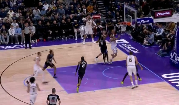 虎扑03月03日讯NBA常规赛,掘金客场对阵爵士的比赛正在进行中。