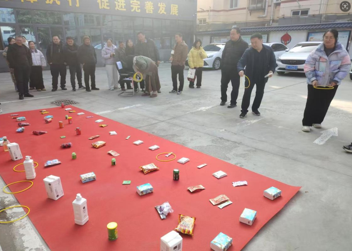 “中了!中了!”循声望去,趣味套圈区围满了人。地面上整齐摆放着日用品、小玩偶、祈福牌等奖品,参与者手持彩圈,凝神瞄准。“哎呀,差一点点!”“别急,稳住心态,再来一次!”每一次投掷都牵动着围观同事的情绪,欢呼声此起彼伏,新年的福气在一圈一圈中被“套”进手里。
