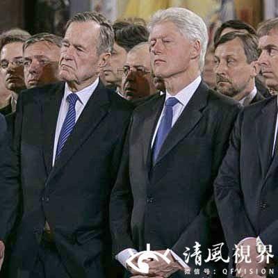 克林顿会耍帅,会摆酷,还会在雨中演讲,有酷酷士兵给他撑伞。他拍照不会让人失望的,
