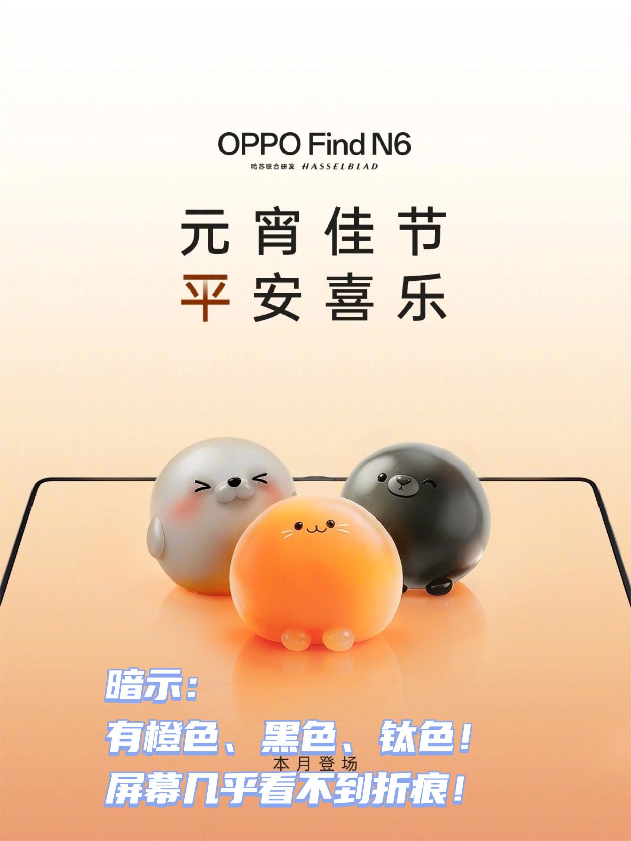 官方爆料!oppo find n6长这样? 刚刚看到OPPO官方发了一个元宵节海报,似乎在暗示Find N6有橙色、黑色和钛色三大颜色,结合之前的曝光图,你们觉得好看吗?而且似乎在暗示屏幕很平整、几乎看不到折痕,你们期待吗? OPPO OPPO折叠屏 手机爆料 OPPOFindN6 科技资讯早知道 手机