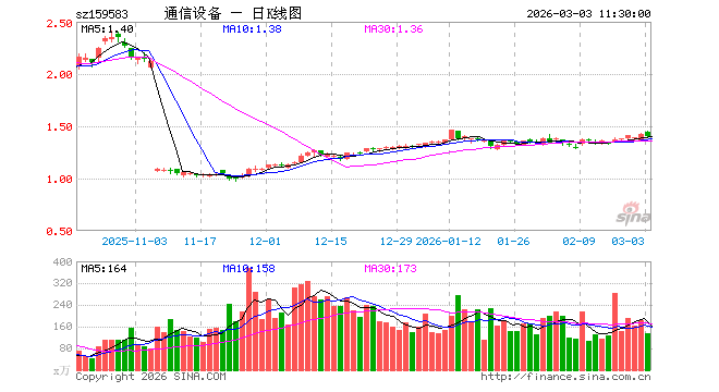 通信设备ETF(159583)业绩比较基准为中证通信设备主题指数收益率,管理人为富国基金管理有限公司,基金经理为苏华清,成立(2024-06-28)以来回报为184.28%,近一个月回报为5.96%。