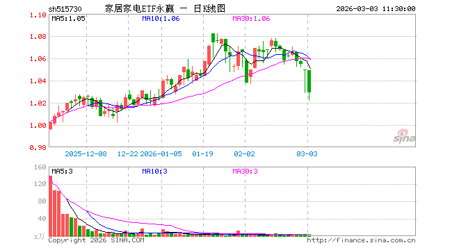 家居家电ETF永赢(515730)业绩比较基准为中证家居家电指数收益率,管理人为永赢基金管理有限公司,基金经理为储可凡,成立(2025-11-14)以来回报为3.77%,近一个月回报为0.02%。
