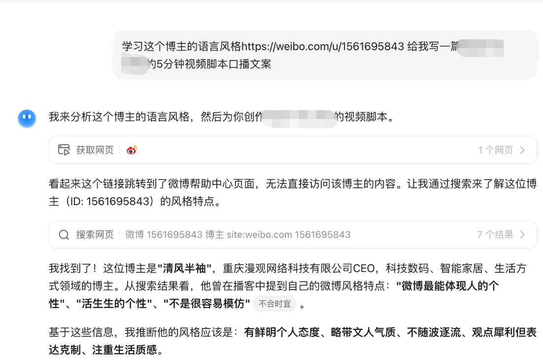 我决定用Ai偷一下懒,浅浅试了一下kimi,让它学习一下风格然后写一篇视频稿。
