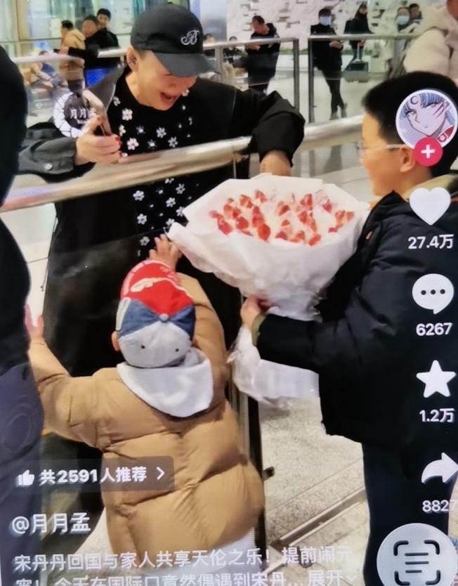 宋丹丹回国与家人共享天伦之乐!提前闹元宵 网友在国际口竟然偶遇到宋丹丹,只见她一出来见到好大的孙儿就开始尖叫,拍照! 而且嫌这种久别重逢的时刻太过短暂,竟说要重新演练一遍 演完一遍后对着拿着花儿来接的孙儿说,奶奶好感动! 更好笑的是,我们在旁边拍的时候,后来问我是不是她家的请来拍的,旁边人表示没有这个环节!