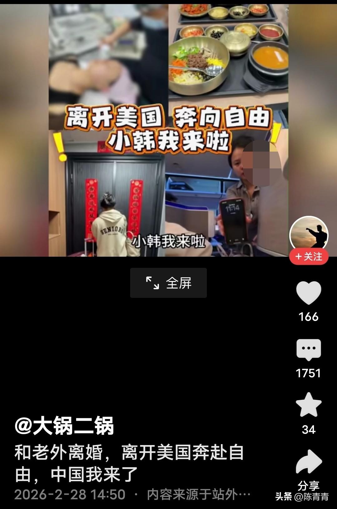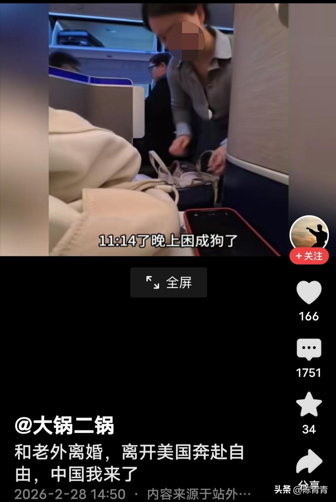 美女与老外离婚,从美国回到国内。她发视频说,“离开美国,奔向自由。中国我来(回)了!” 嫁到美国有啥好炫耀的?与老外离婚也不是啥光彩事。当初,嫁给老外就应该慎重考虑,比如性格、语言障碍、当地风土民情等。不管是结婚离婚,都应该理性考虑,而非盲目的虚荣心选择。 有网友说,“时代大趋势,中华民族再次腾飞,将凝聚千万海外华人,祖国欢迎你。” “政府要管理严格,这类人最好提供健康证明才可入关。” “国外野惯了,回来收心了。” “男士们擦亮眼镜,接盘时候要小心。