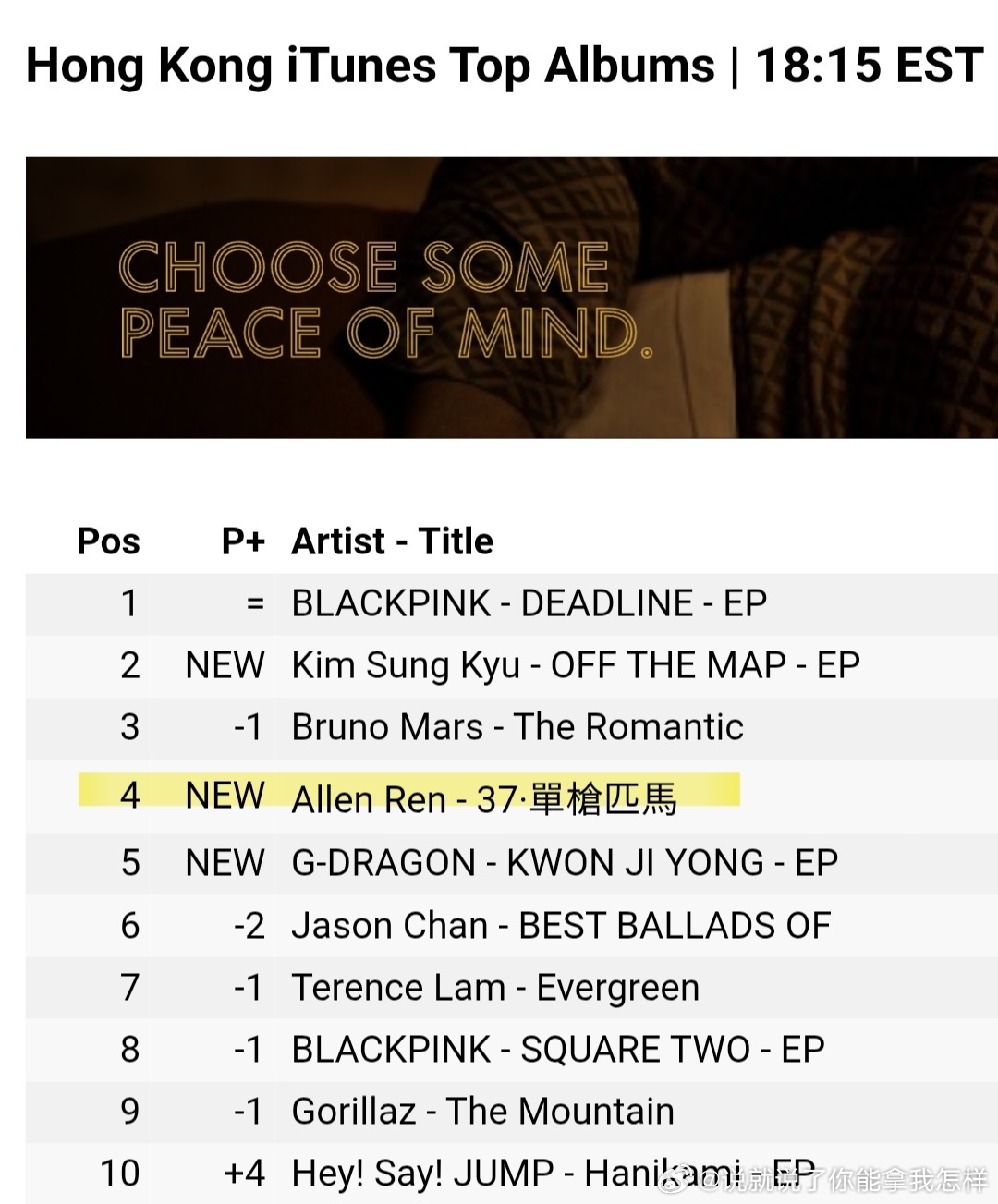 任嘉伦新专辑《37.单枪匹马》海外空降上线即获得好成绩燃爆海外榜单!台湾省登顶第1✨,新加坡、泰国、马来西亚稳居第2🥳,更闯入美国榜174位,全球榜单高居36!实力瞩目!🎵任嘉伦新专辑37单枪匹马