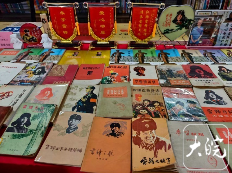 学雷锋书屋内,泛黄的老报纸、朴素的红色书籍、精致的纪念邮票与珍贵文献资料整齐陈列。这些跨越数十年的藏品,生动讲述着雷锋的事迹,也见证着一代代人传承雷锋精神的历程。