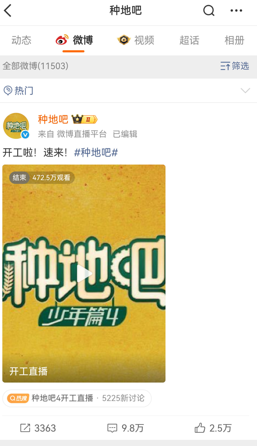 十个勤天种地吧4开工直播 又没留回放