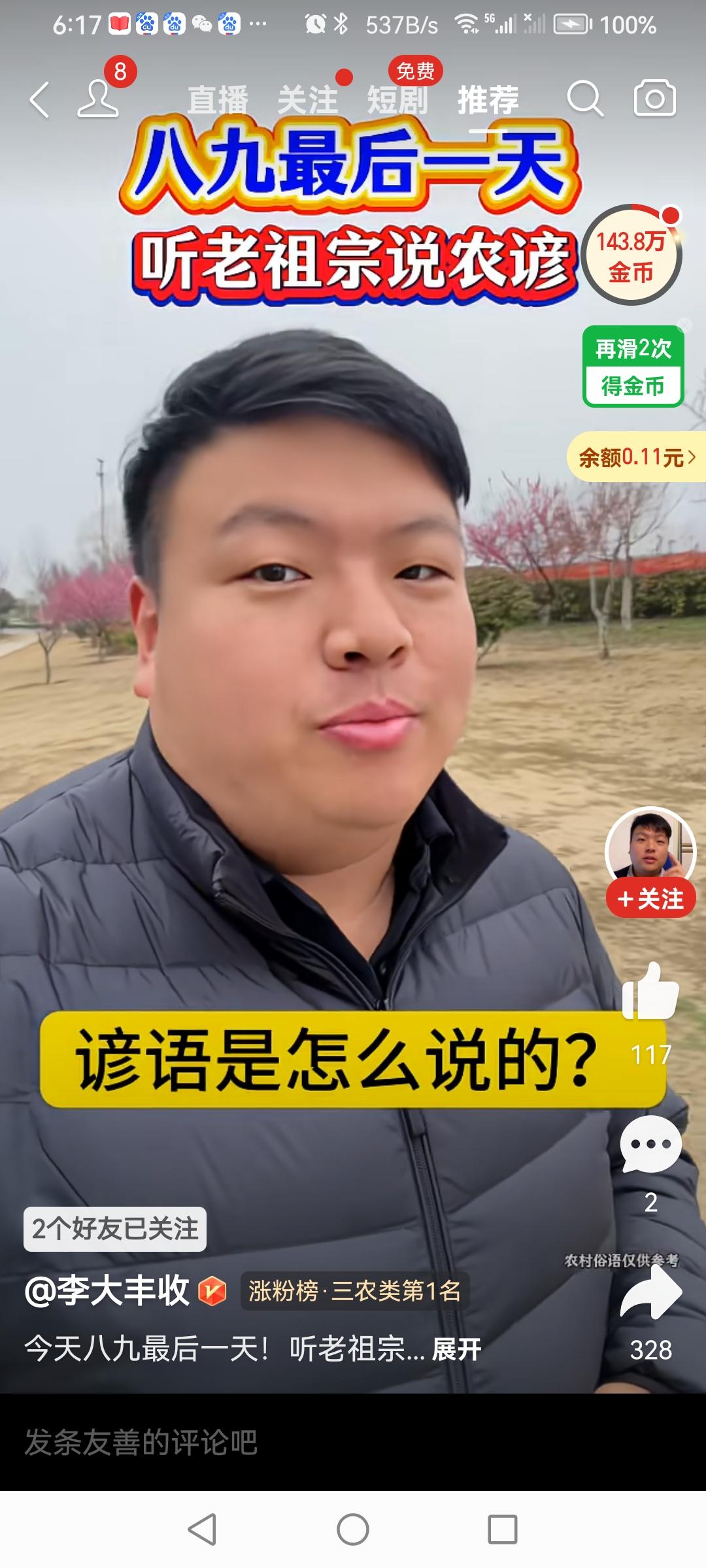 正月十四天气阴。雨至早晨停,白天阴,晚上见到了一会月亮。无论农谚怎样说,总有“春雨贵如油”!(图片来源:老山兰上午、傍晚随手拍)