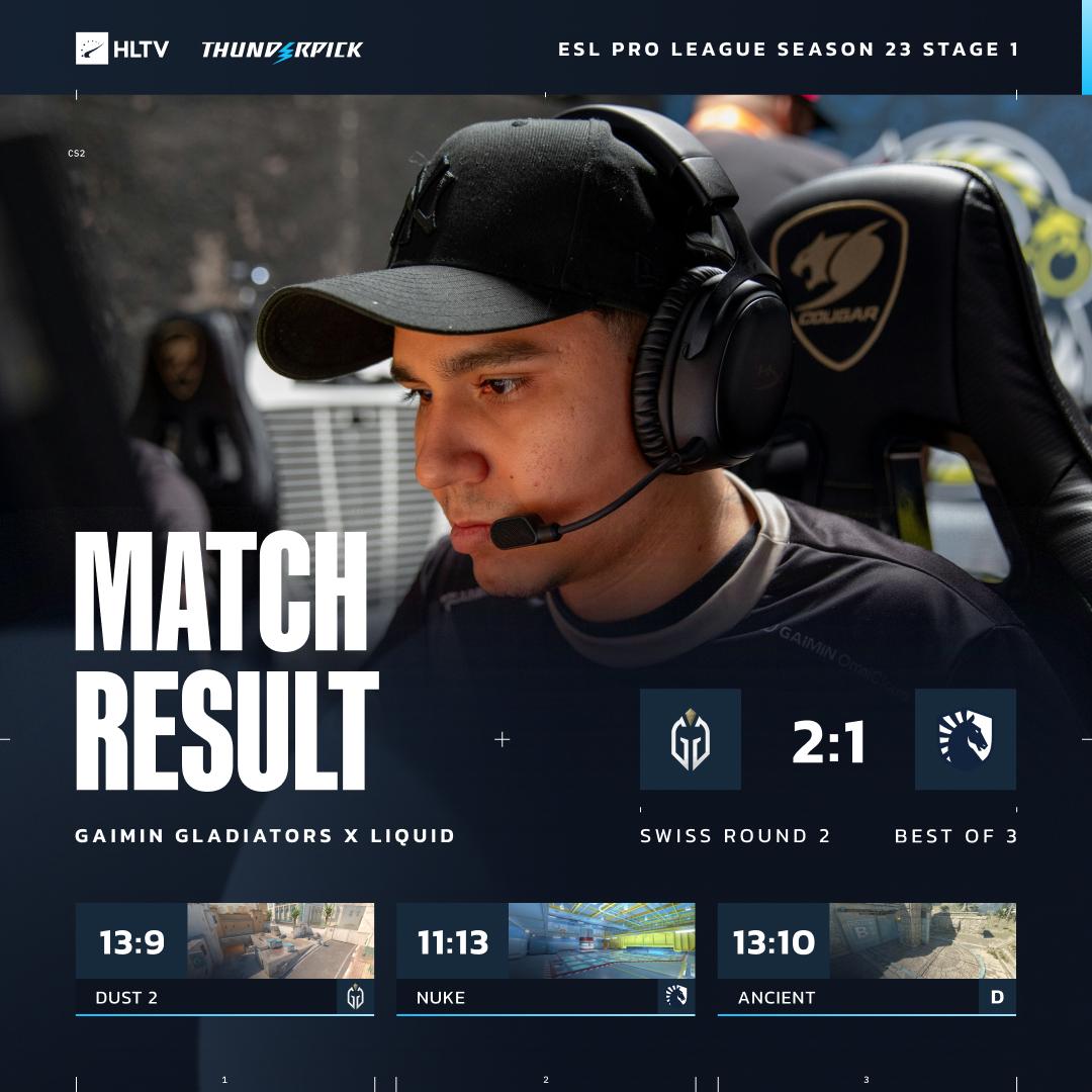 虎扑03月03日讯EPLS23第一阶段第二轮:GaiminGladiators对阵Liquid