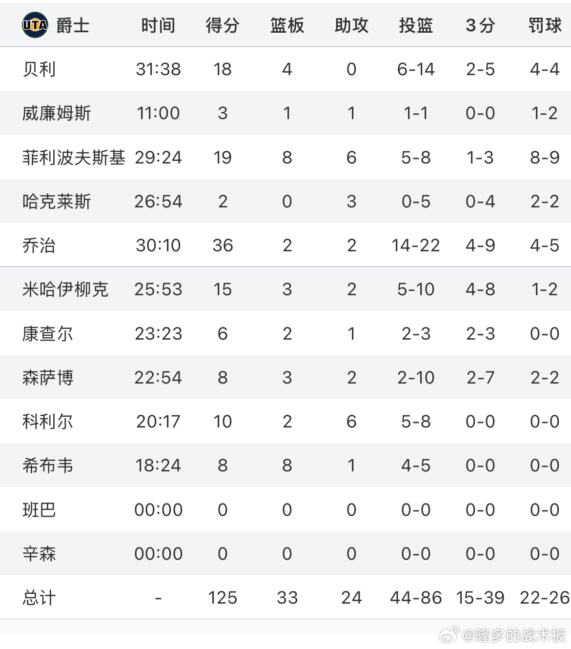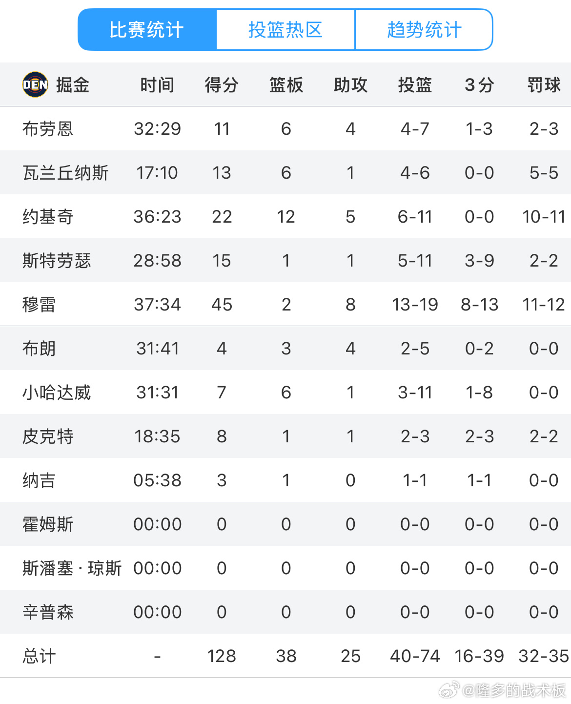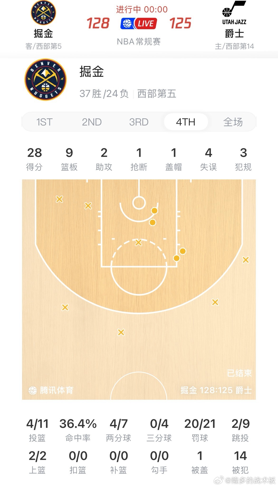 爵士125-128惜败掘金,穆雷45分,乔治36分第四节掘金制造21次罚球,爵士