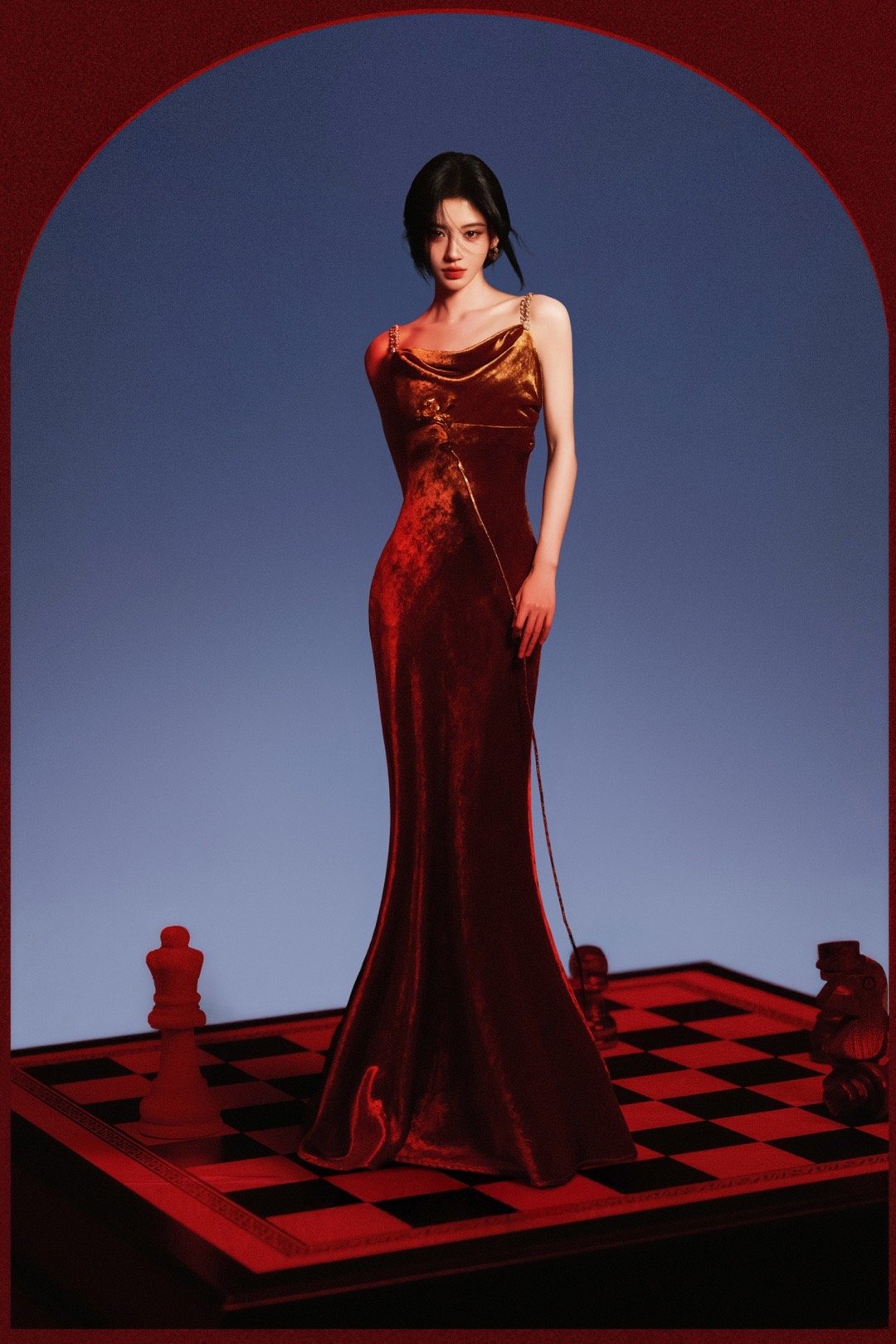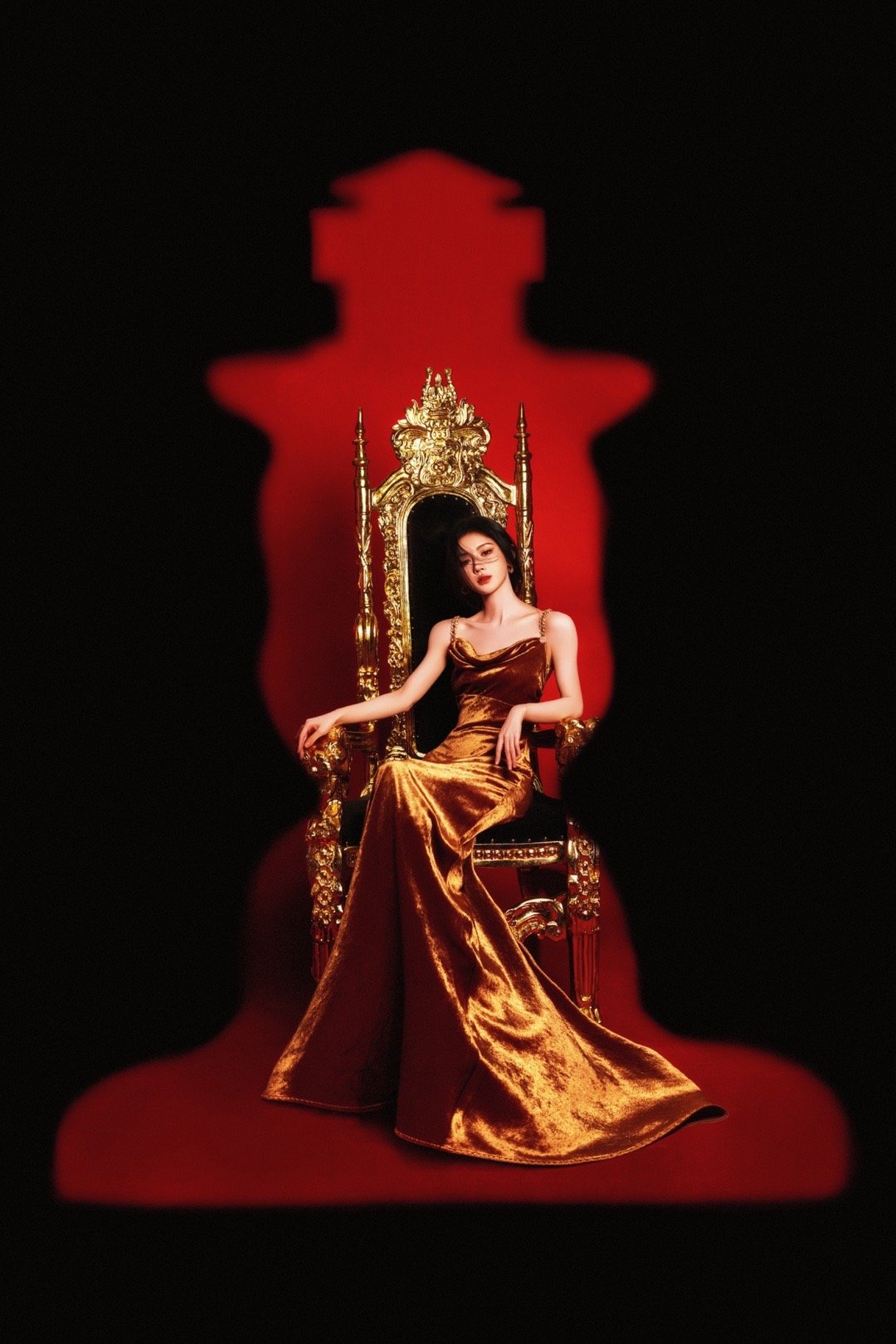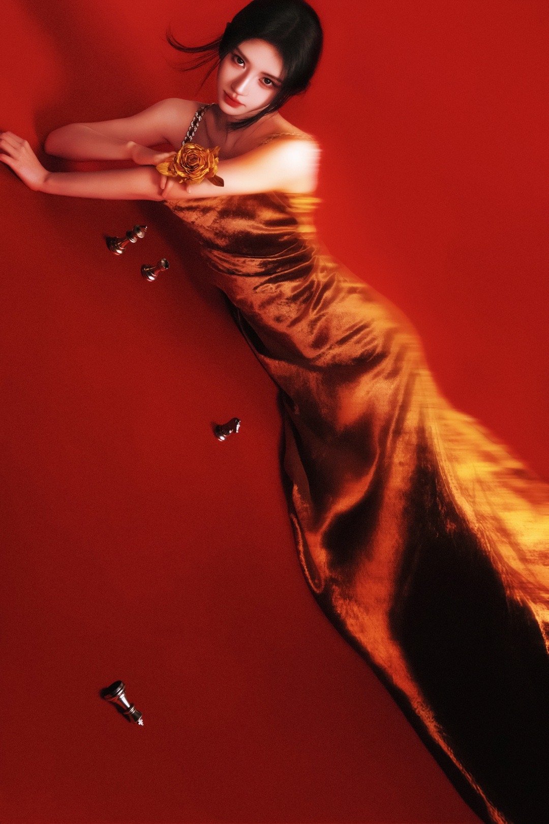 鞠婧祎|元宵节营业出图,穿BEQUEENSTORY鎏金玫瑰长裙,执棋女王,光芒自