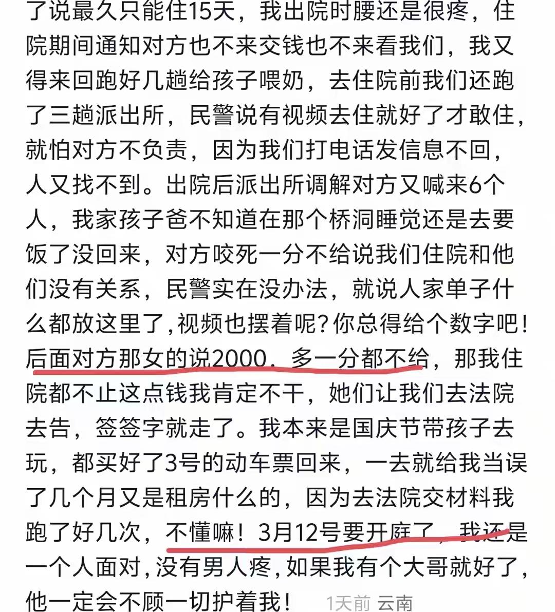 这个小宝宝就是云南被玩具车撞倒摔伤的宝宝,当时才5个月大被妈妈抱在怀里,没想到在商场下电梯时,玩具车撞倒了妈妈,怀抱中的宝宝也飞了出去,摔得头上是青一块紫一块还起了大包,最后被确诊为闭合性颅脑损伤。 最可气的是,对方叫来多人对宝马围堵,只愿意赔偿2000块。 事情发生在2025年9月29日,云南一商场内爸妈抱着孩子下电梯。 后面一名带孩子的女子,一手拎着孩子,一手拎着玩具扭扭车。孩子不敢上电梯,她就把玩具车先放在电梯上,扭头管孩子。 由于是下电梯,玩具车冲着前面的人加速滑行过去,女子眼睁睁的就这么看着,没有丝毫提醒前面人。 玩具车一个转弯,撞到了宝妈腿上,怀抱中的宝宝被摔了出去,自己也狠狠的摔在楼梯上。 去了县医院,给孩子拍了脑CT,并无出血。对方女子不仅没垫付医药费,还叫来了八九个人对宝妈围堵。 要知道摔倒头部是要观察的,宝妈不放心又去了昆明的医院检查。医生说目前看着没问题,要持续观察。直到10月10日,孩子出现呕血,抽搐的现象,经过检查孩子被确认为闭合性颅脑损伤。 自己腰部受伤住院15天,孩子看病多花费的钱,对方是一分也不想掏。在警方的调节下,对方又叫来了五六个人,只愿意赔偿2000元。 2000元哪里够连这段时间看病的钱都不够,宝妈无奈只能走司法程序。 但凡女子能喊一下前面的人避让玩具车,可能也不会出现孩子受伤,大人受伤的事情。 既然出了事情,就要积极的去解决,自己惹得祸,就要正面面对。叫来这么多人干什么,又不是去打架,就一个宝妈和孩子你们还能吃什么亏还是怎么样?这不是欺负人嘛。 3月12日就要开庭了,宝妈把女子和商场都告上了法庭,希望能有个公正的审判,能有一个好的结果。